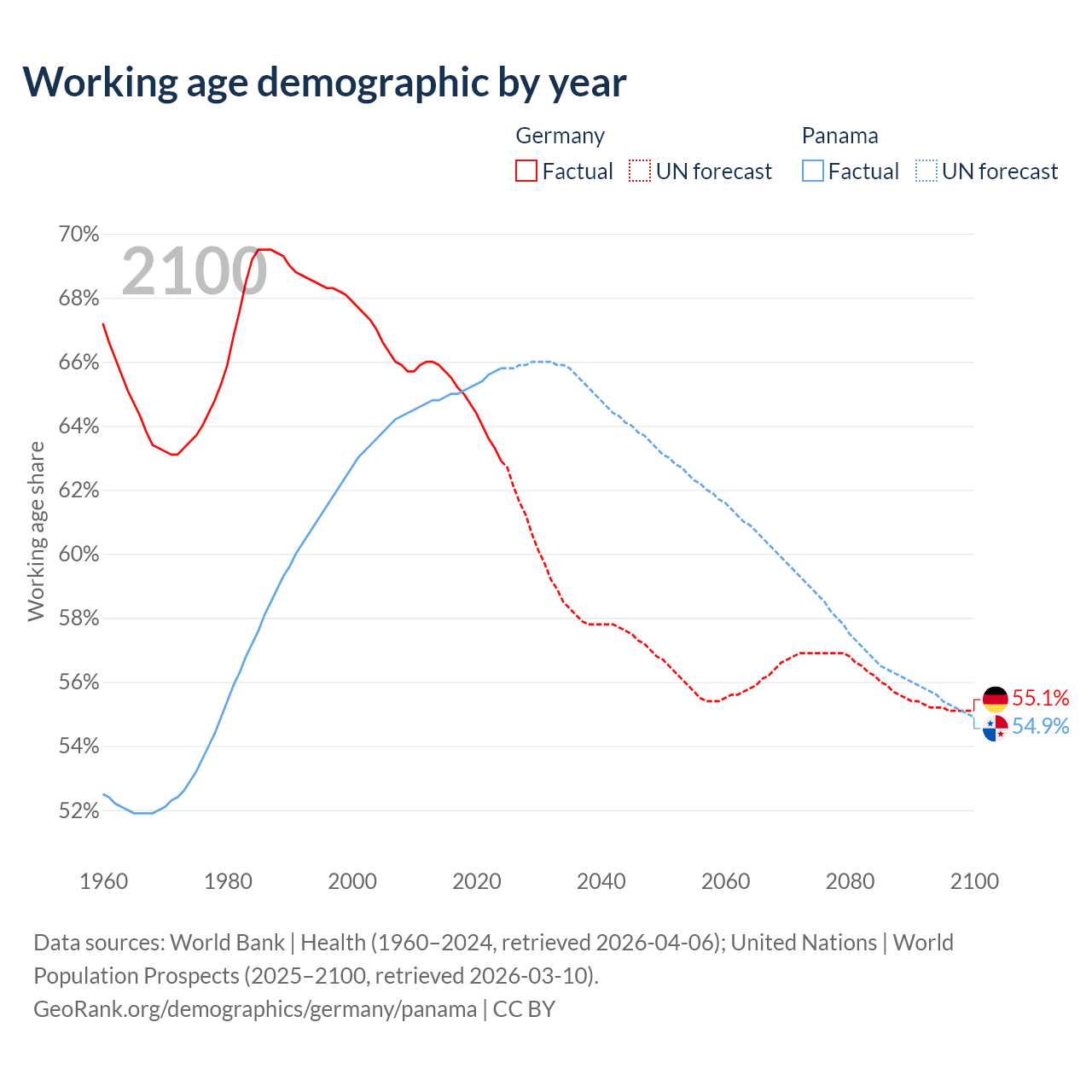 - Germany has 51.9M working age adults (aged 15-64) vs 3.05M in Panama.