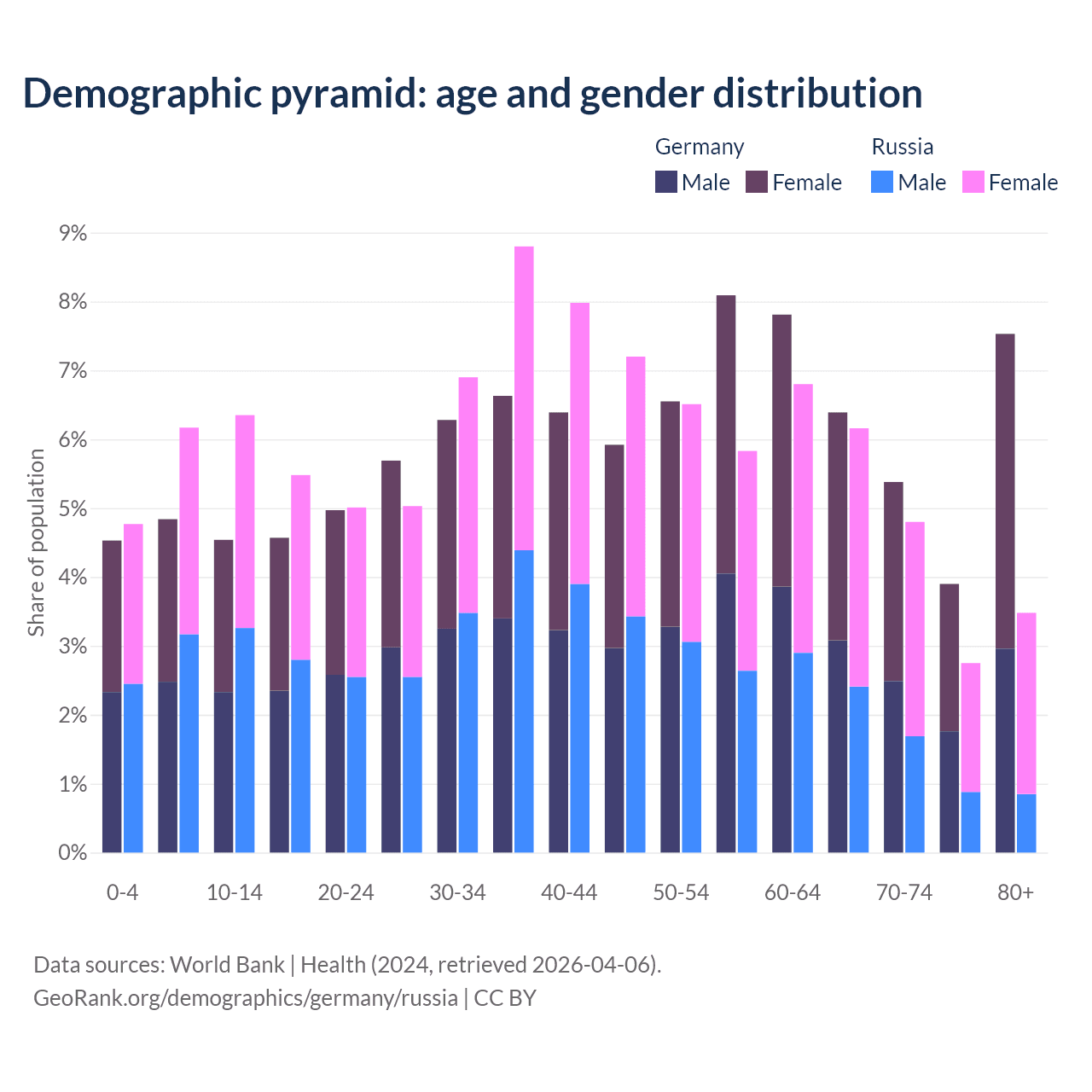 Demographics of Germany compared to Russia: