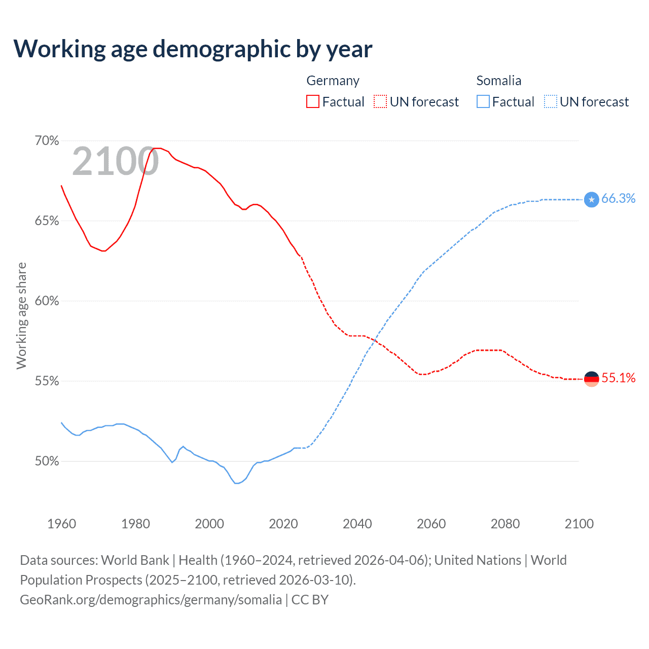 - Germany has 51.9M working age adults (aged 15-64) vs 10.4M in Somalia.