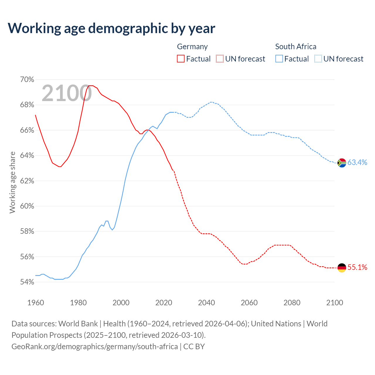 - Germany has 51.9M working age adults (aged 15-64) vs 44.3M in South Africa.
