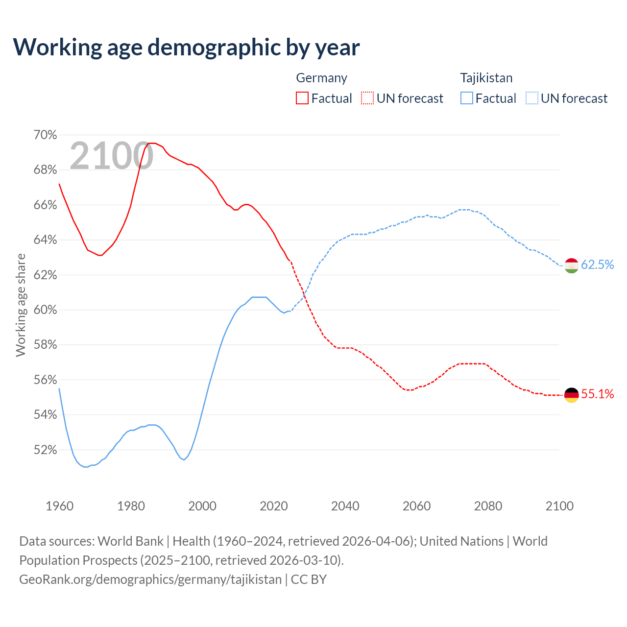 - Germany has 51.9M working age adults (aged 15-64) vs 6.61M in Tajikistan.