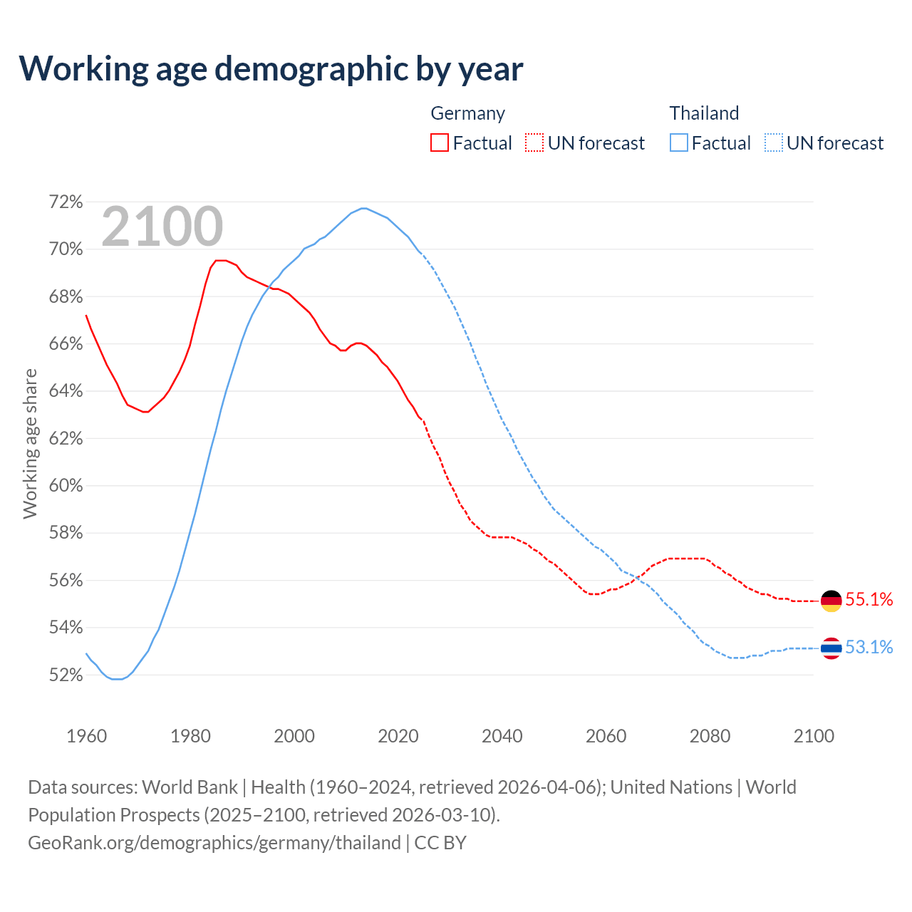 - Germany has 51.9M working age adults (aged 15-64) vs 50M in Thailand.
