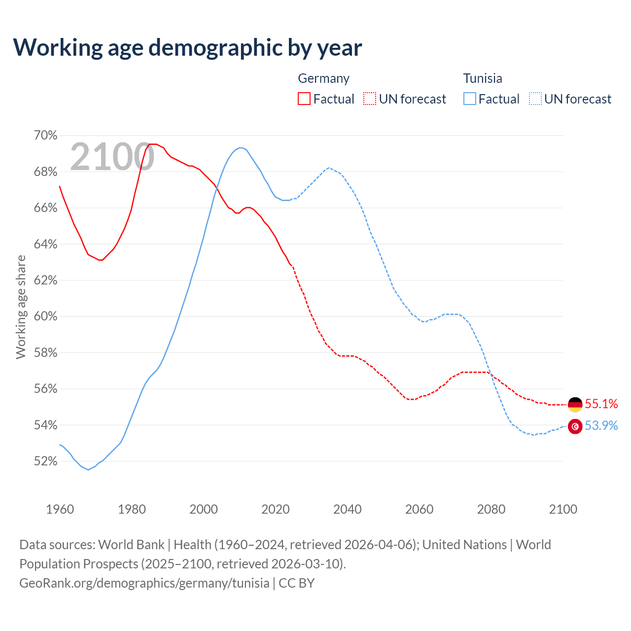 - Germany has 51.9M working age adults (aged 15-64) vs 8.26M in Tunisia.