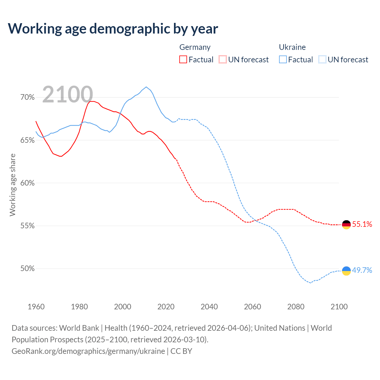 - Germany has 51.9M working age adults (aged 15-64) vs 26.9M in Ukraine.