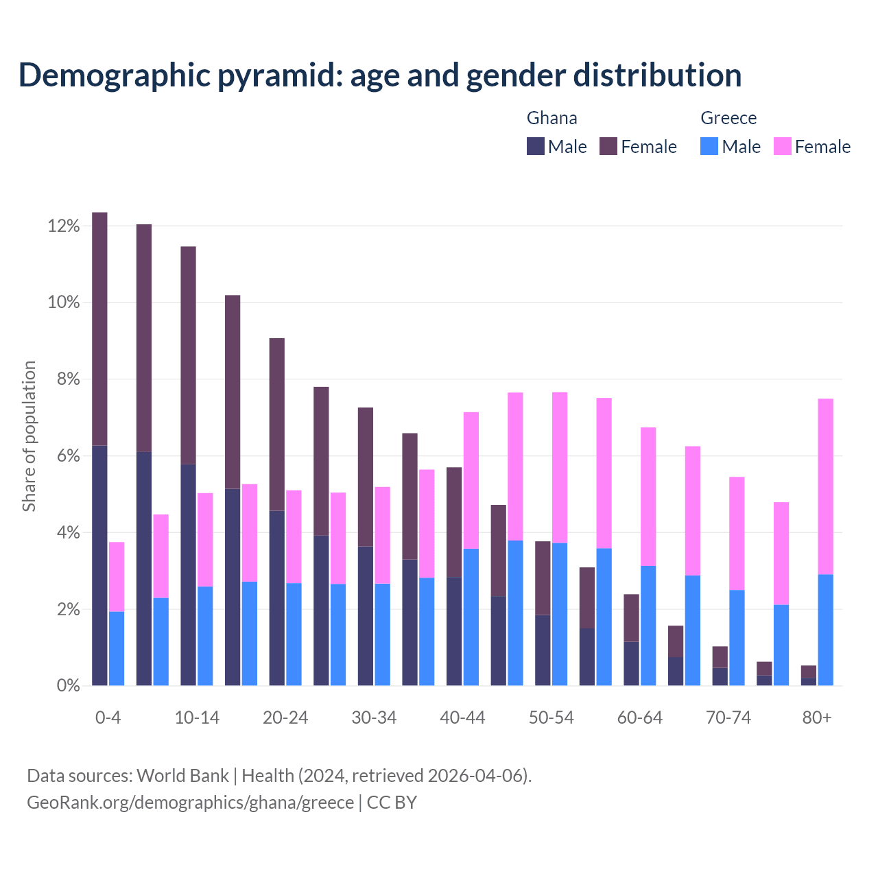 Demographics of Ghana compared to Greece: