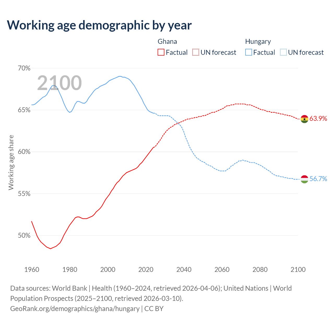 - Ghana has 21.7M working age adults (aged 15-64) vs 6.12M in Hungary.