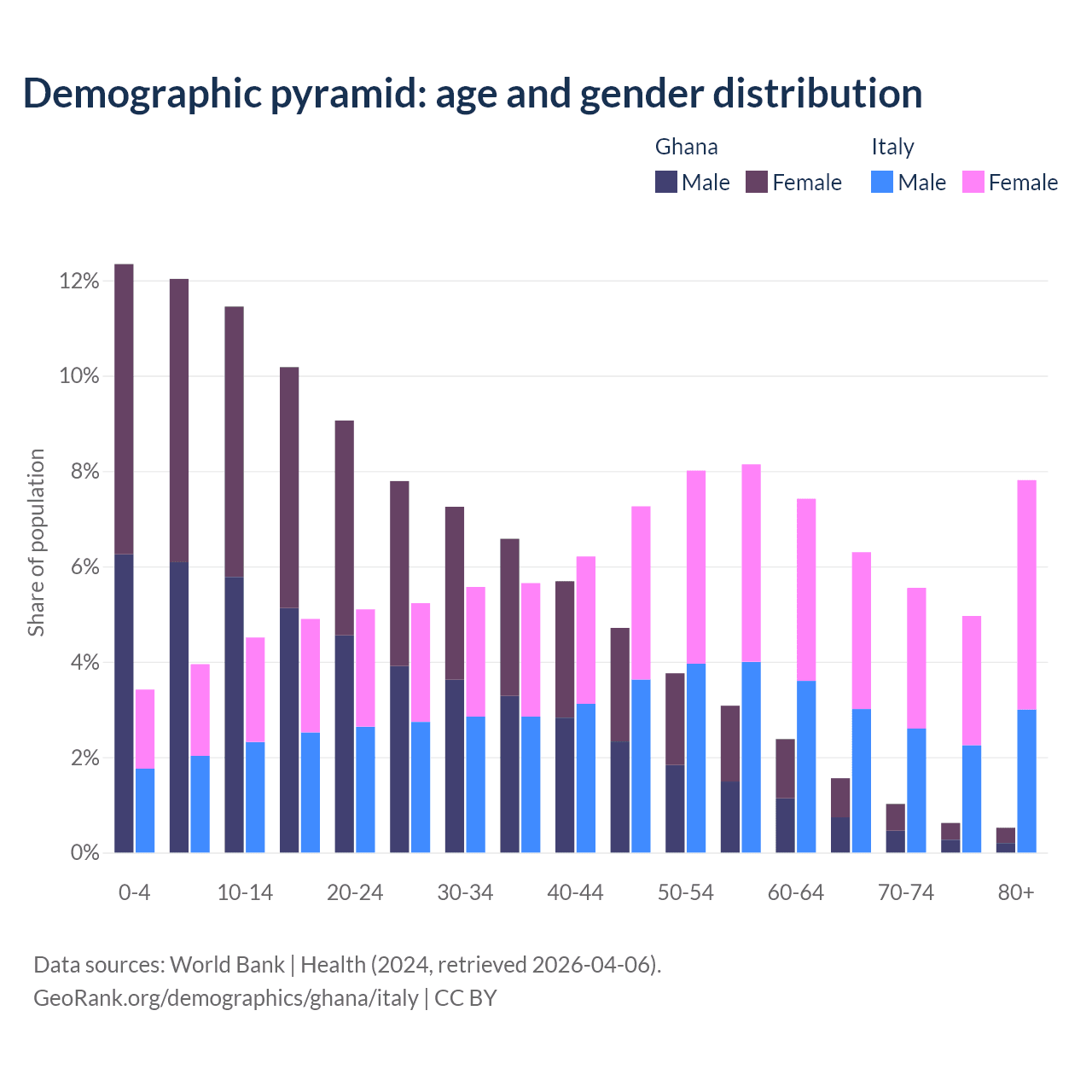 Demographics of Ghana compared to Italy: