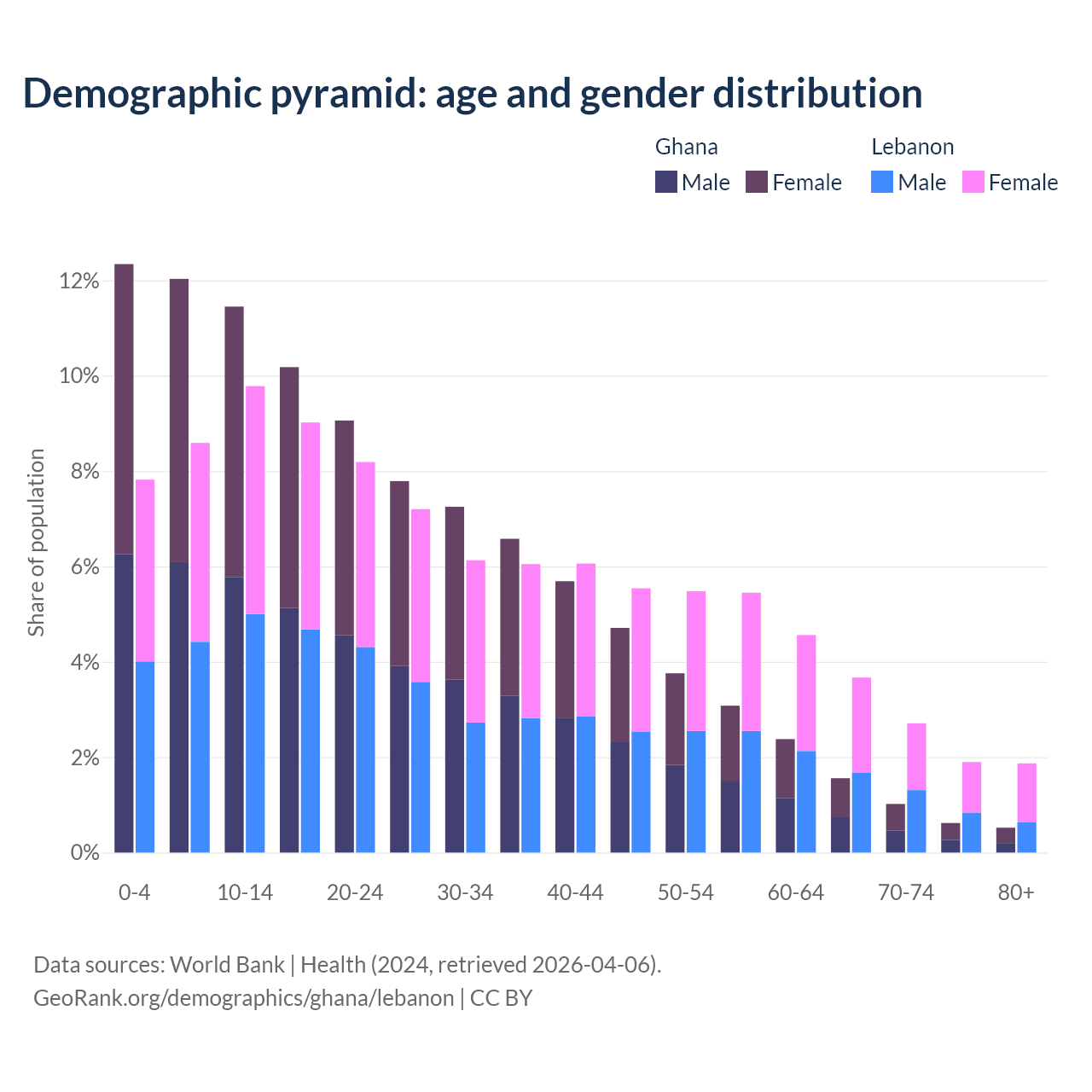 Demographics of Ghana compared to Lebanon:
