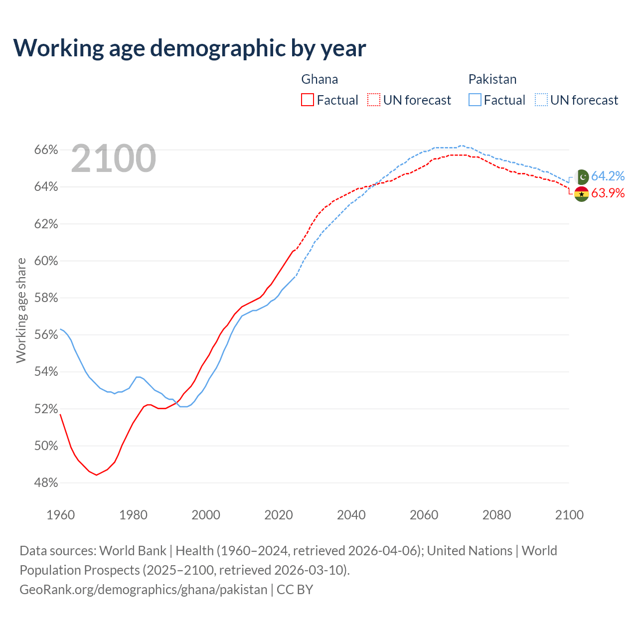 - Ghana has 21.7M working age adults (aged 15-64) vs 154M in Pakistan.