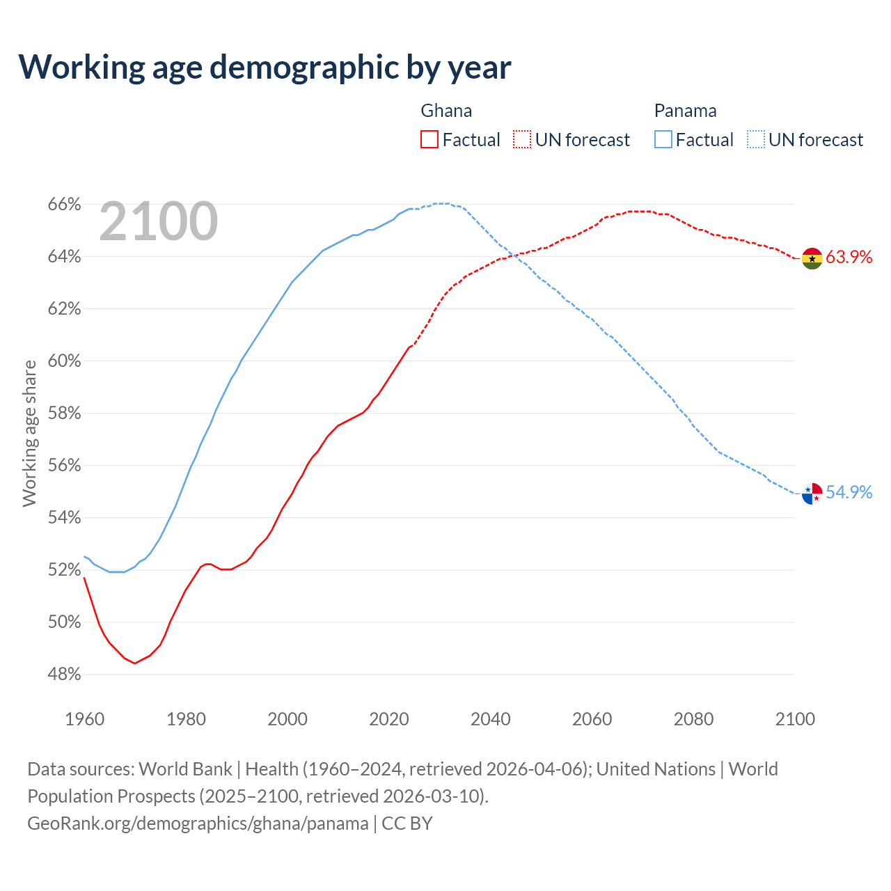 - Ghana has 21.7M working age adults (aged 15-64) vs 3.05M in Panama.