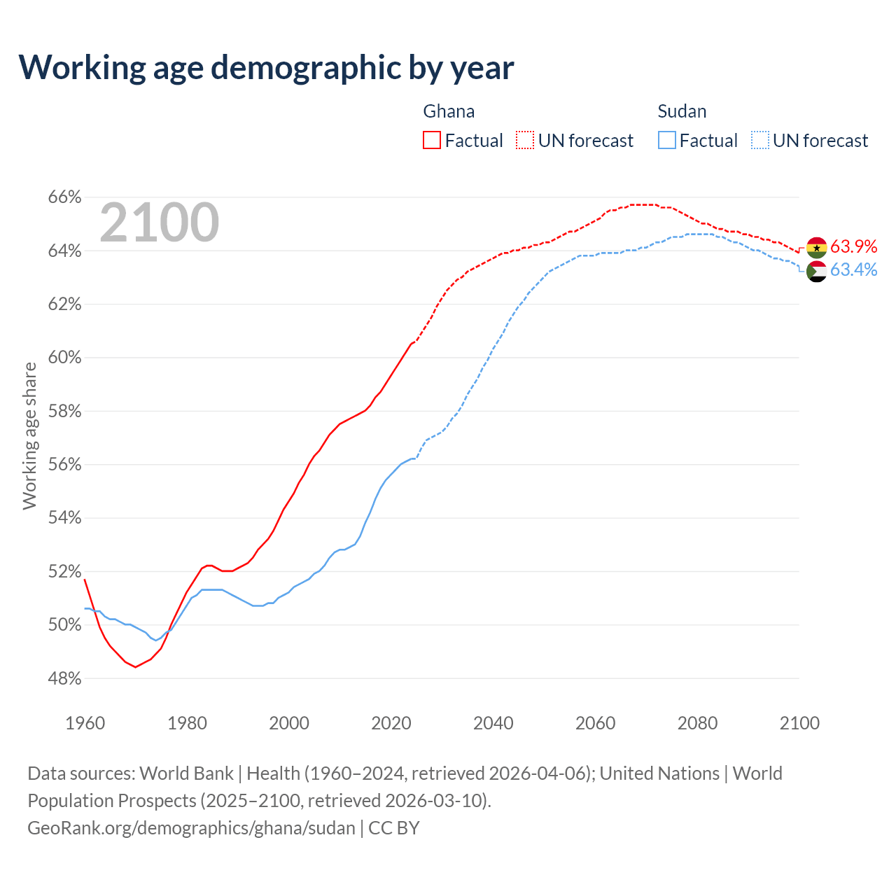 - Ghana has 21.7M working age adults (aged 15-64) vs 30M in Sudan.