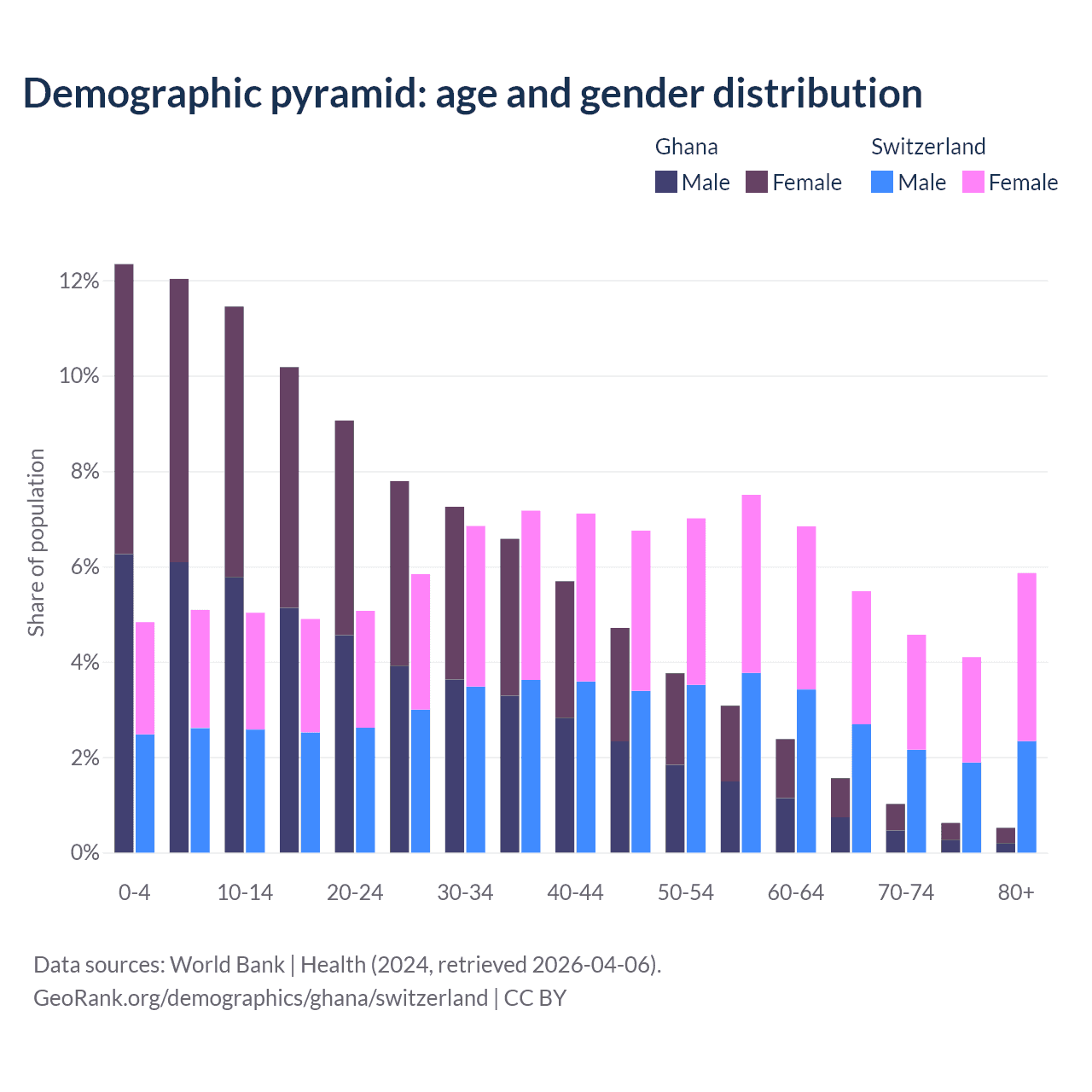 Demographics of Ghana compared to Switzerland: