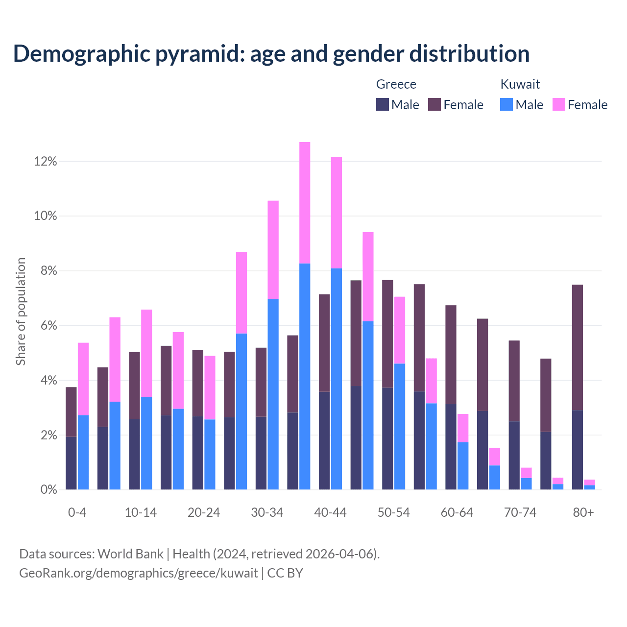 Demographics of Greece compared to Kuwait: