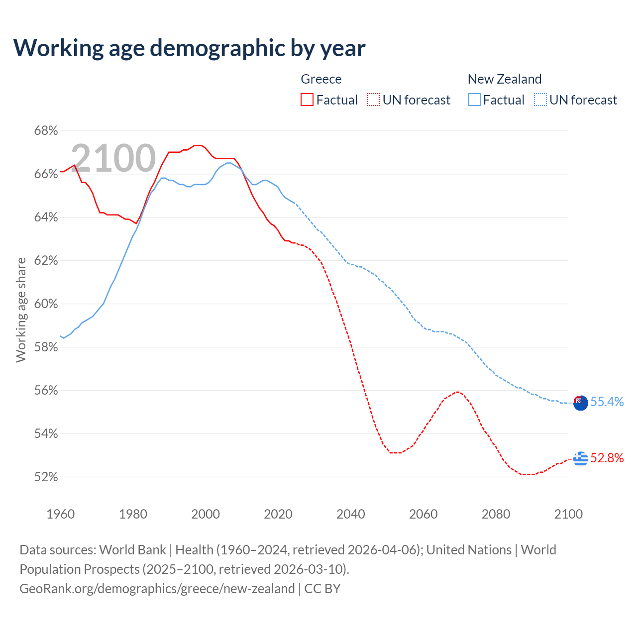 - Greece has 6.4M working age adults (aged 15-64) vs 3.48M in New Zealand.