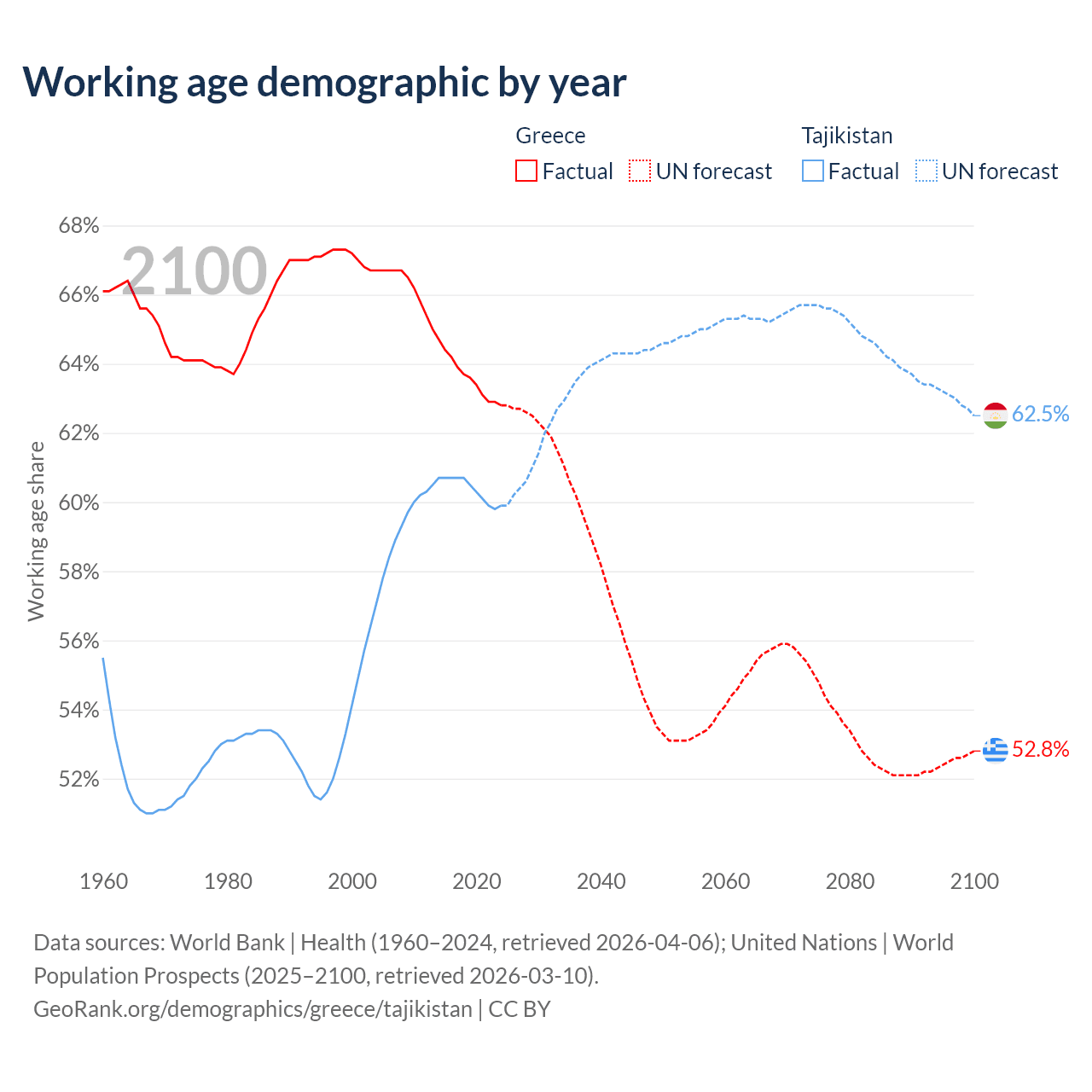 - Greece has 6.4M working age adults (aged 15-64) vs 6.61M in Tajikistan.