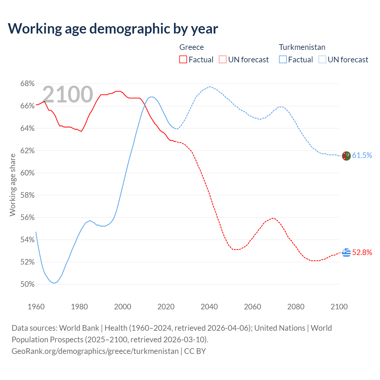 - Greece has 6.4M working age adults (aged 15-64) vs 4.97M in Turkmenistan.