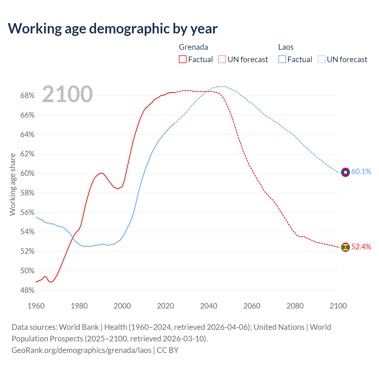 - Grenada has 80.2K working age adults (aged 15-64) vs 5.21M in Laos.