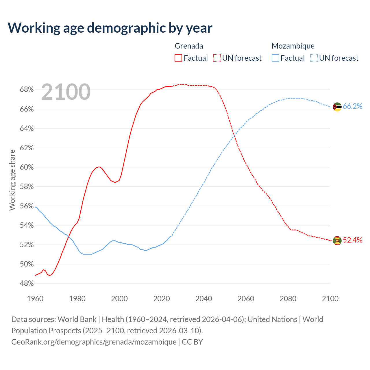 - Grenada has 80.2K working age adults (aged 15-64) vs 19.5M in Mozambique.