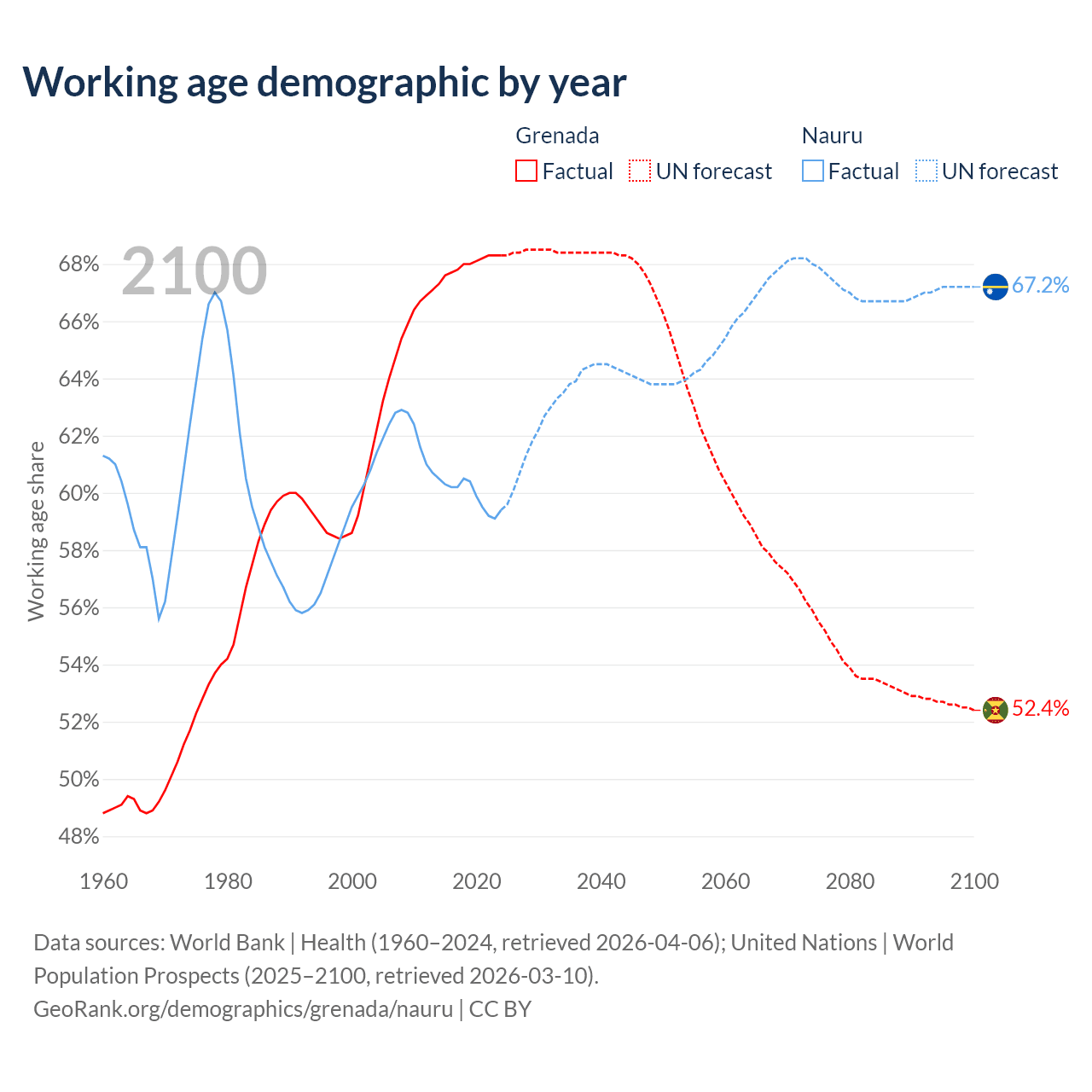 - Grenada has 80.2K working age adults (aged 15-64) vs 7.2K in Nauru.