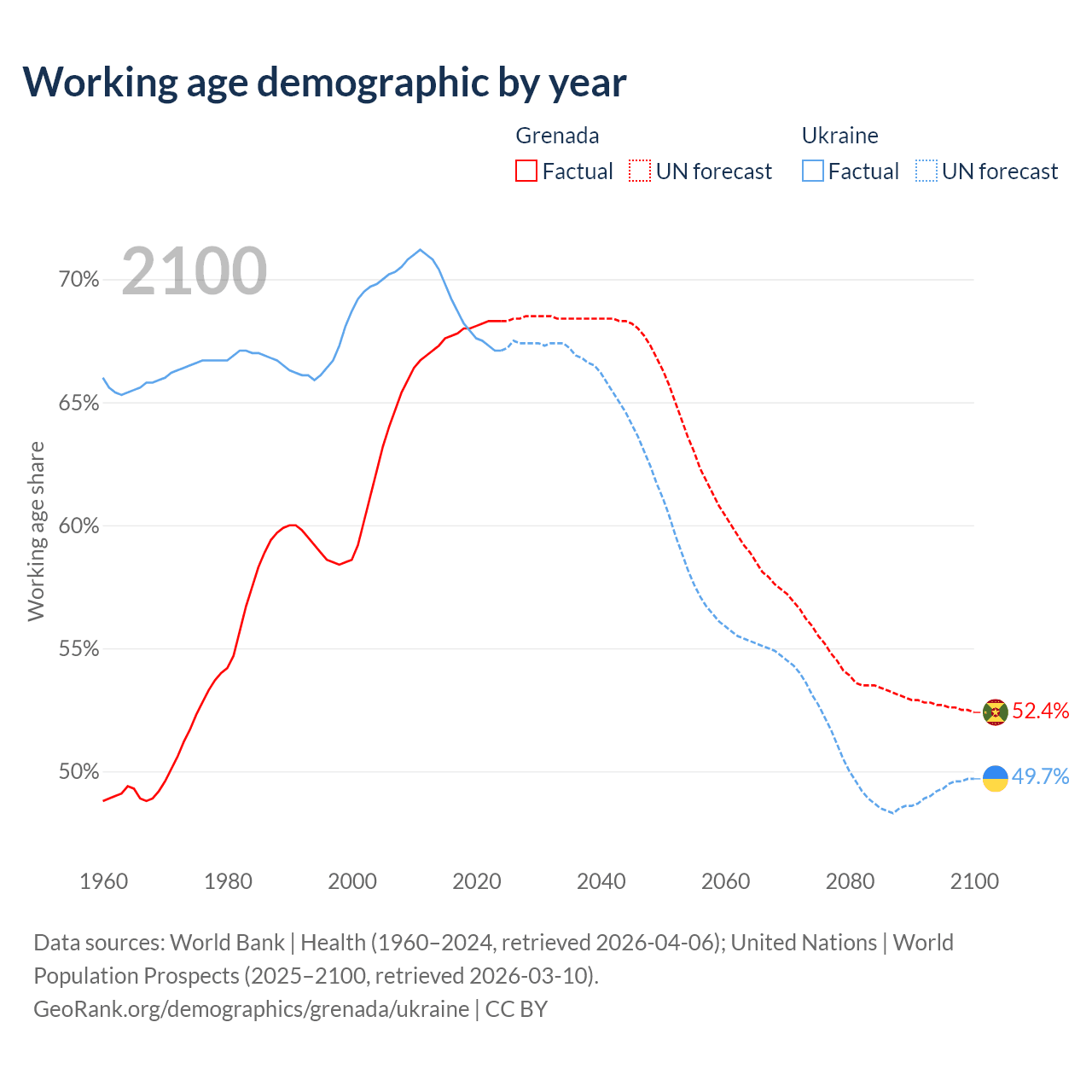 - Grenada has 80.2K working age adults (aged 15-64) vs 26.9M in Ukraine.