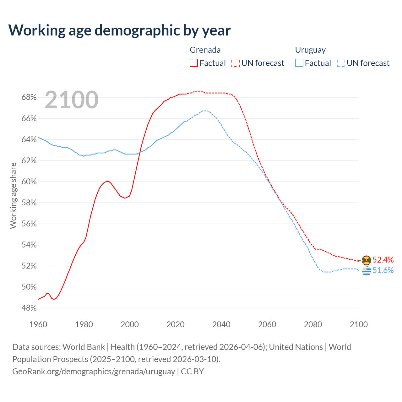 - Grenada has 80.2K working age adults (aged 15-64) vs 2.22M in Uruguay.