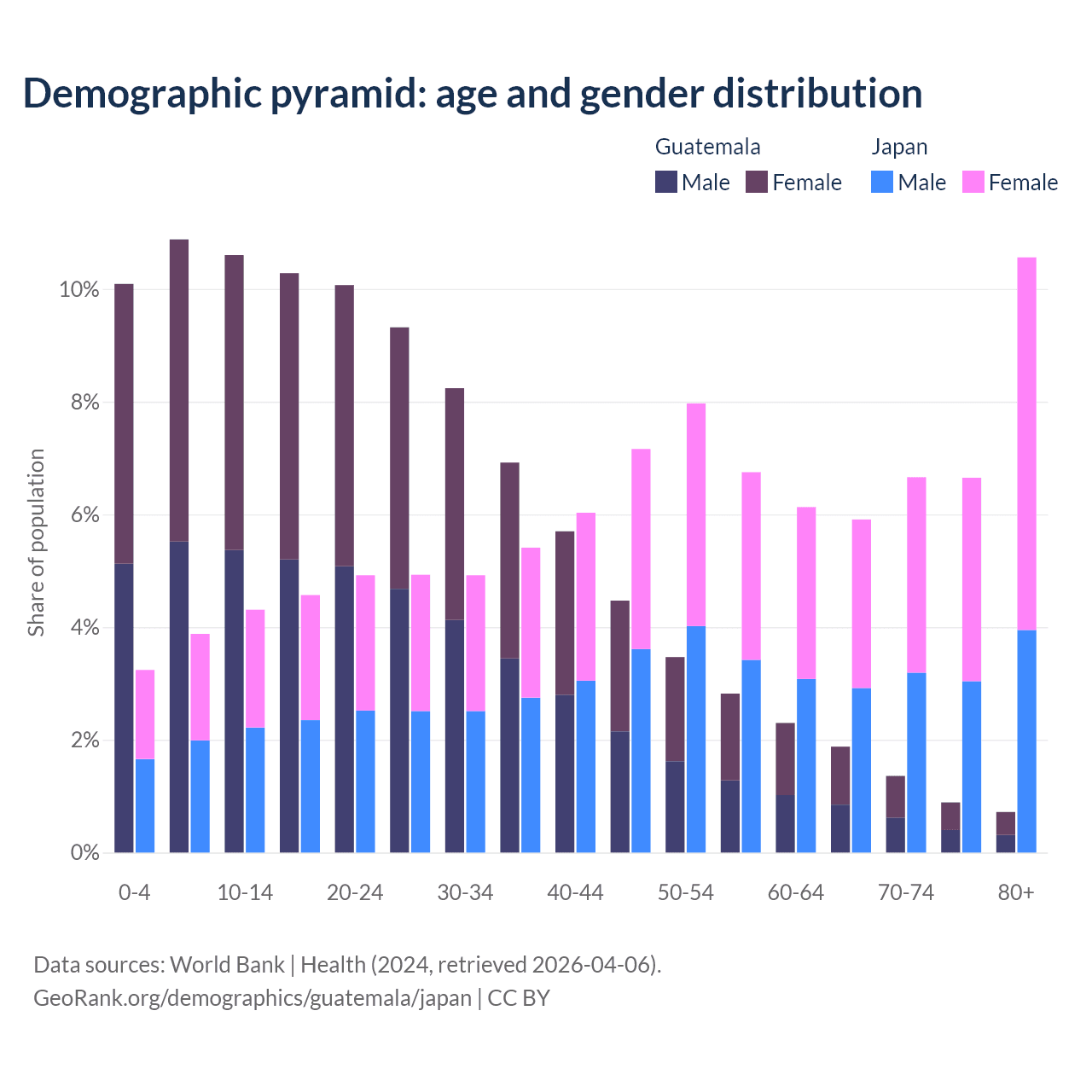 Demographics of Guatemala compared to Japan: