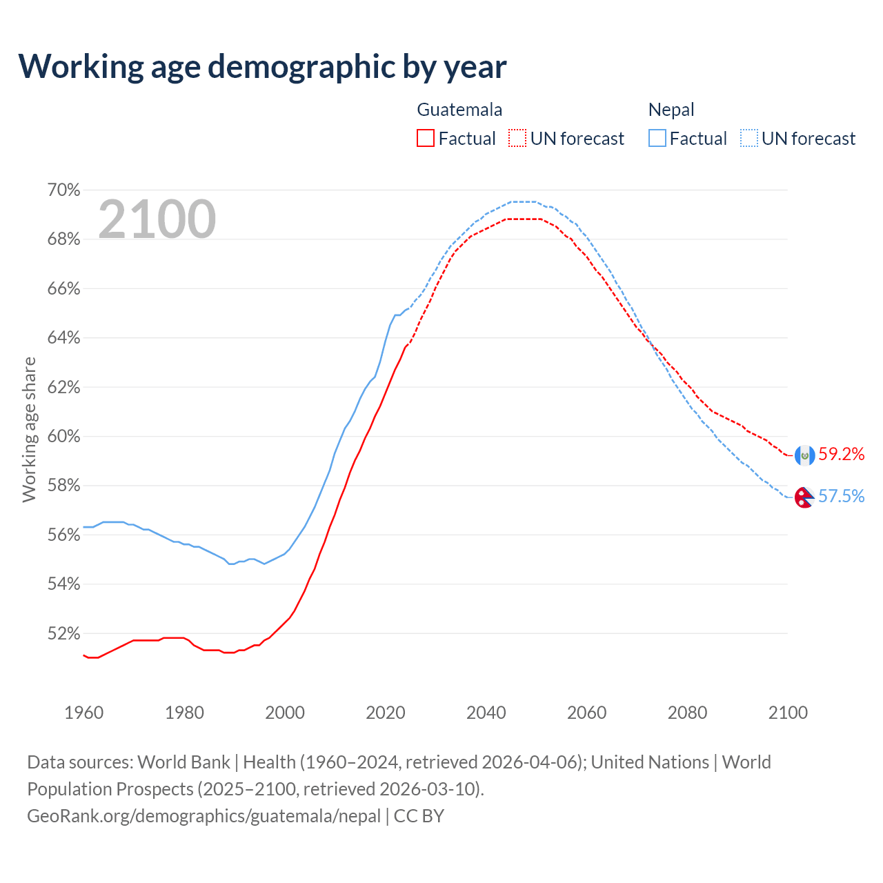 - As of 2026, the population of Guatemala is 19M vs 29.6M in Nepal - 1.55 times difference.