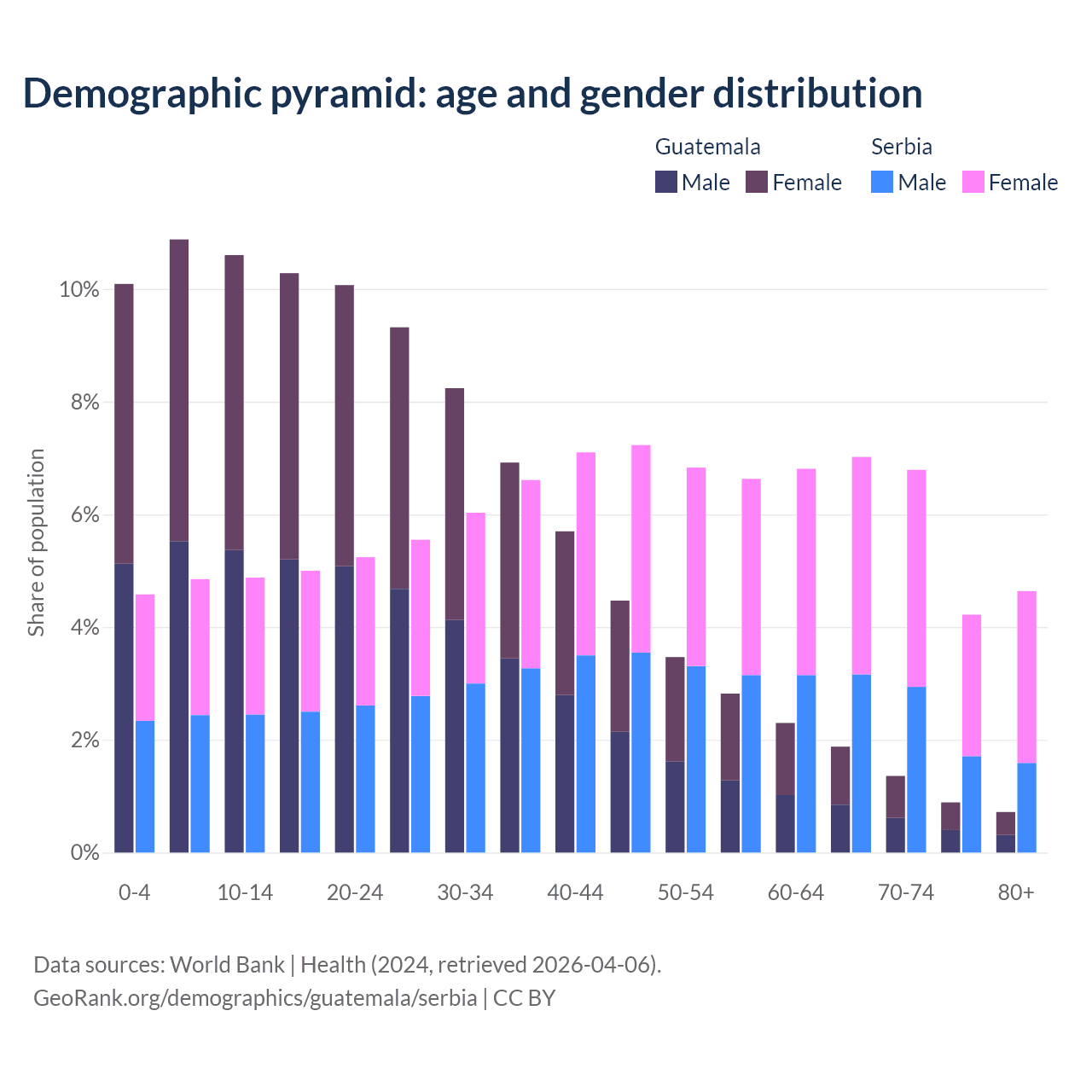 Demographics of Guatemala compared to Serbia: