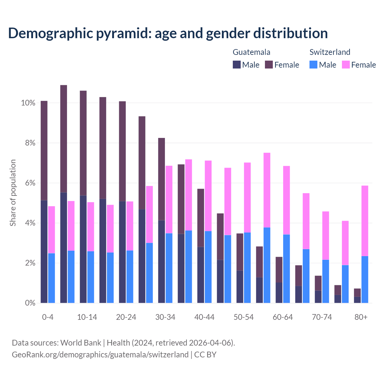 Demographics of Guatemala compared to Switzerland: