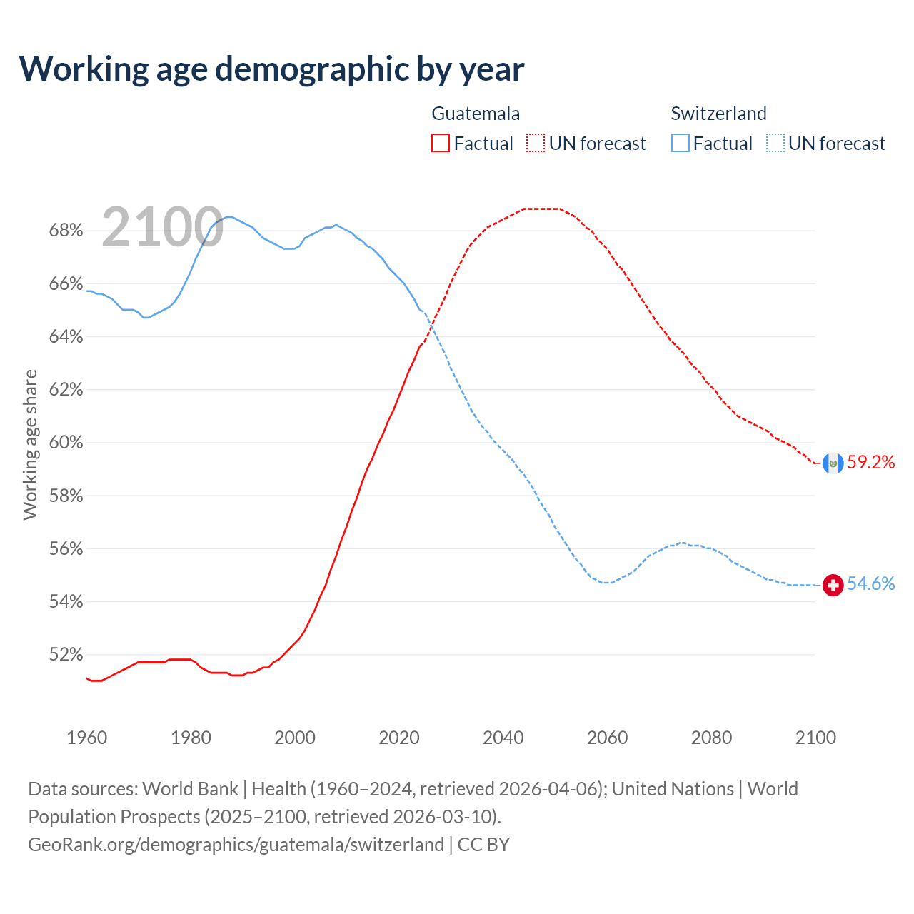 - Guatemala has 12.1M working age adults (aged 15-64) vs 5.92M in Switzerland.