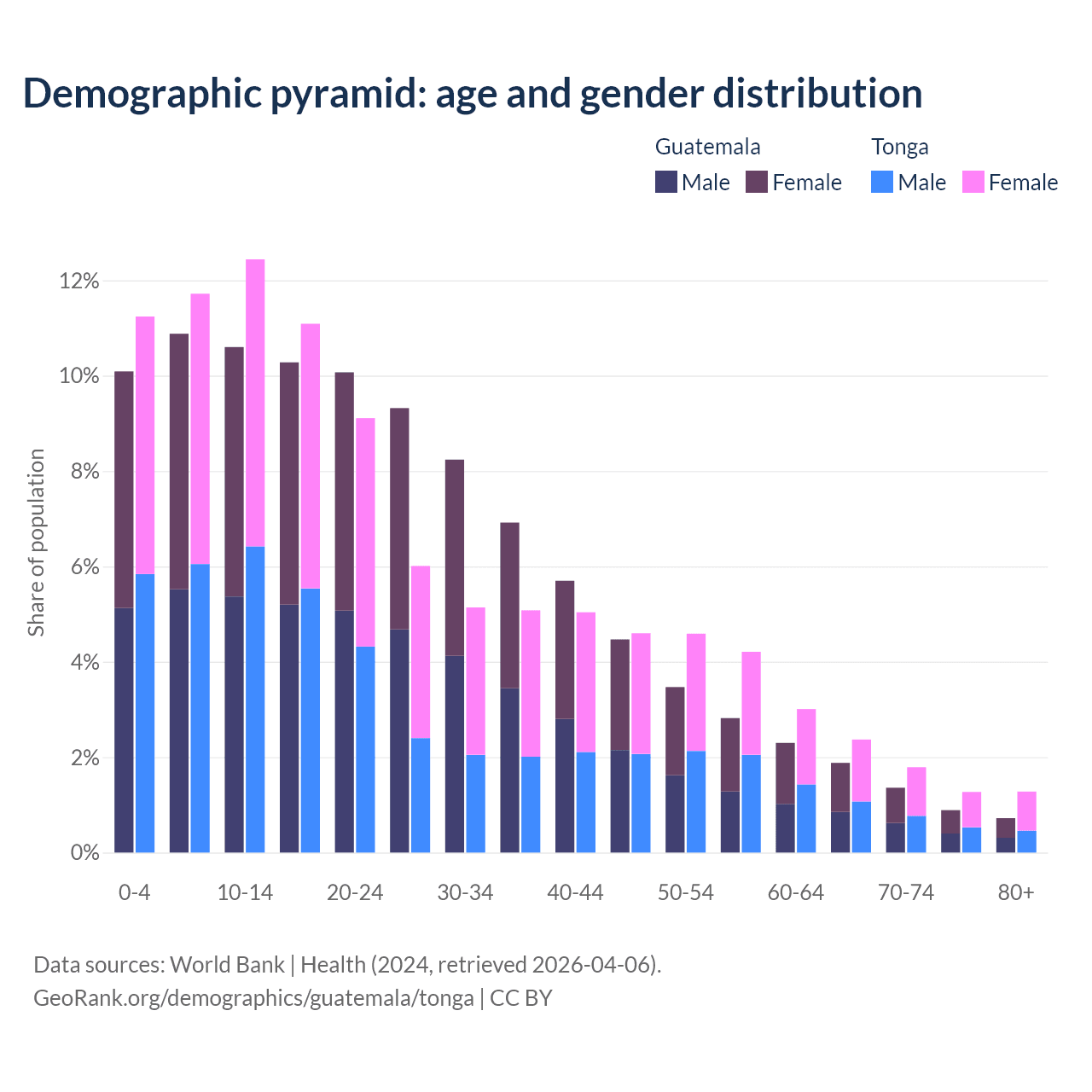 Demographics of Guatemala compared to Tonga: