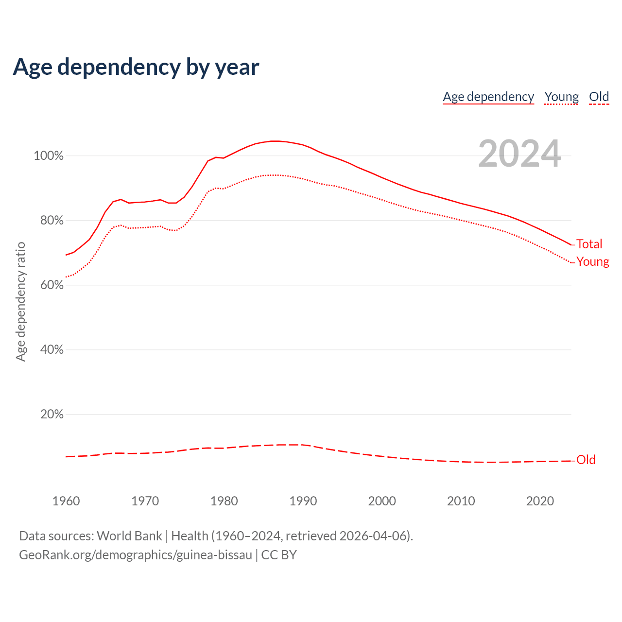 Data sources: World Bank | Health (1960–2024, retrieved 2026-04-06); U.S. Census Bureau (1960–2024, retrieved 2026-02-08).