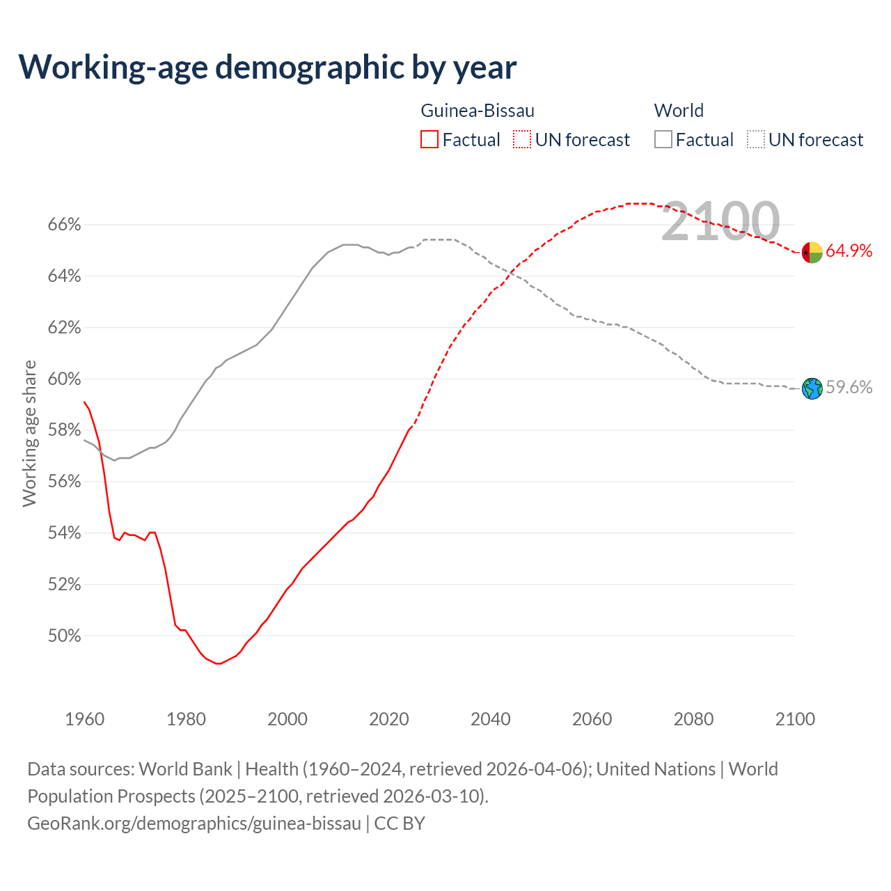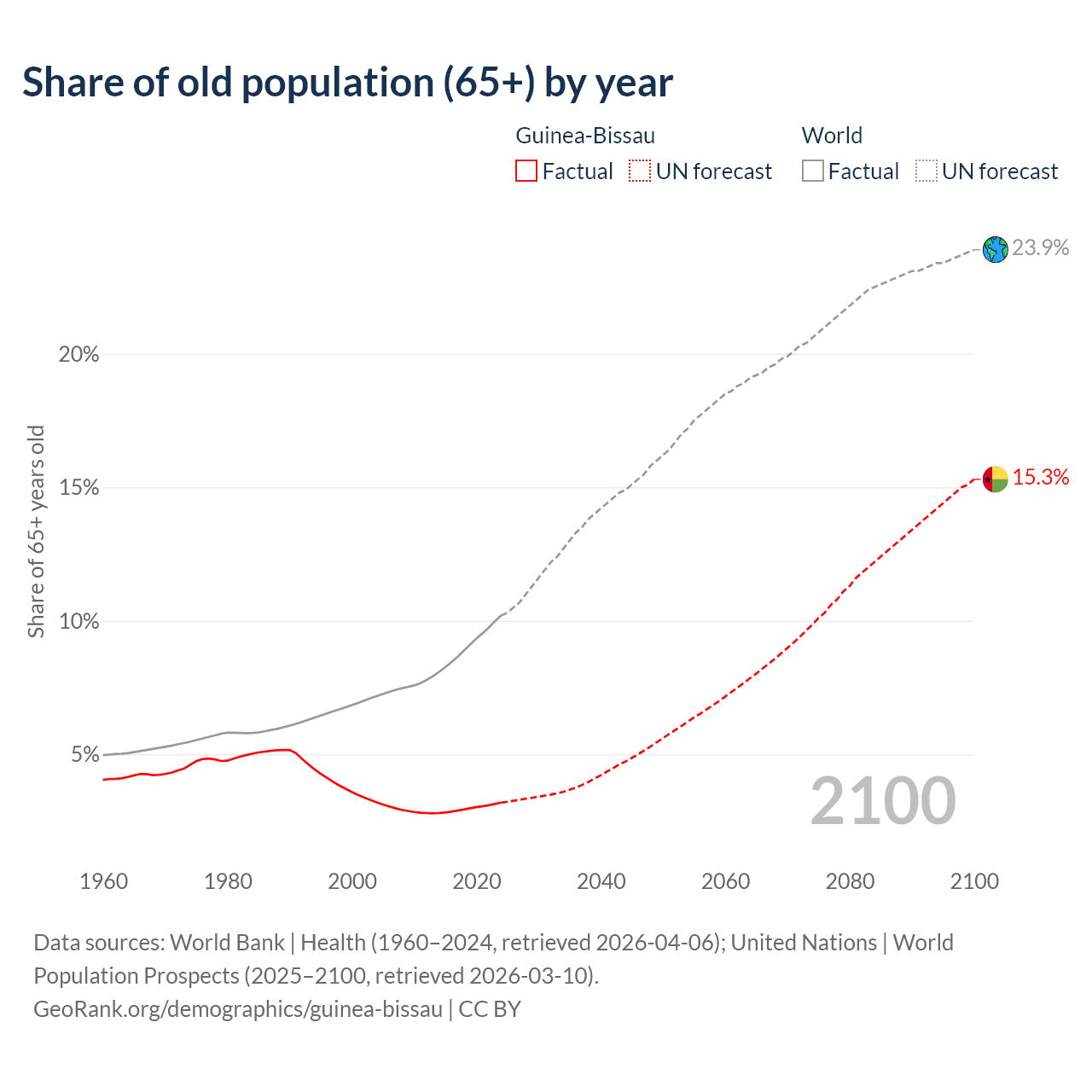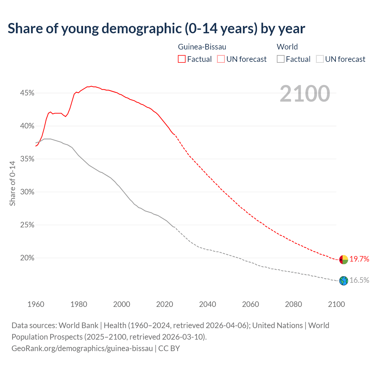 Median age in Guinea-Bissau, 1960–2100