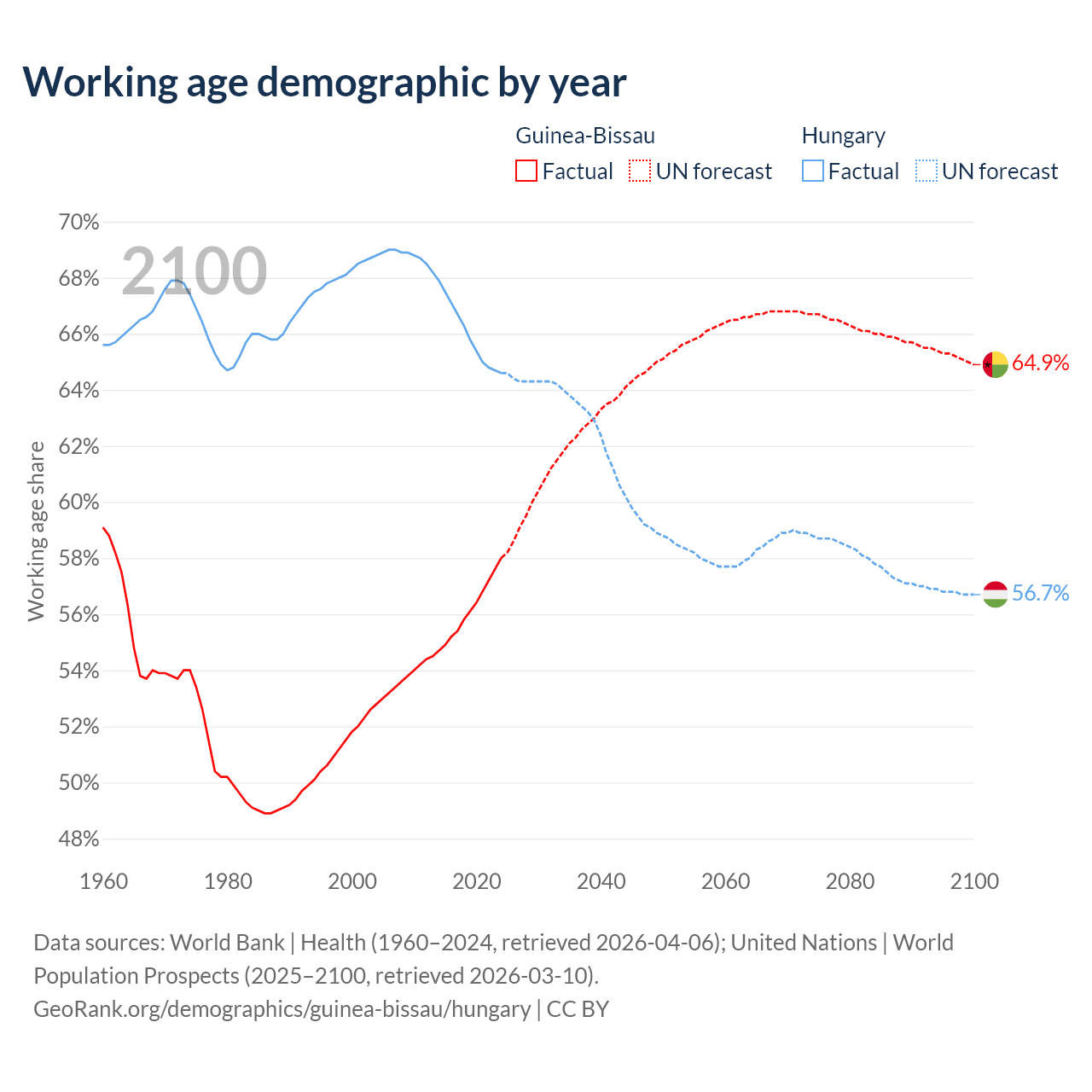 - Guinea-Bissau has 1.34M working age adults (aged 15-64) vs 6.12M in Hungary.