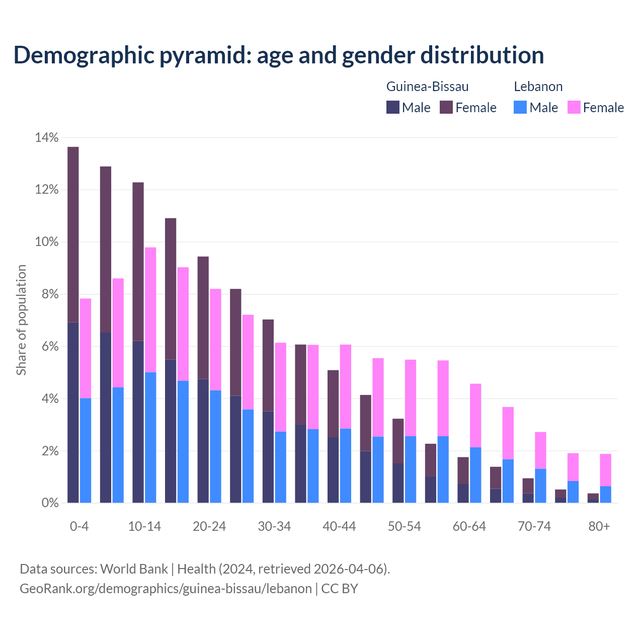 Demographics of Guinea-Bissau compared to Lebanon: