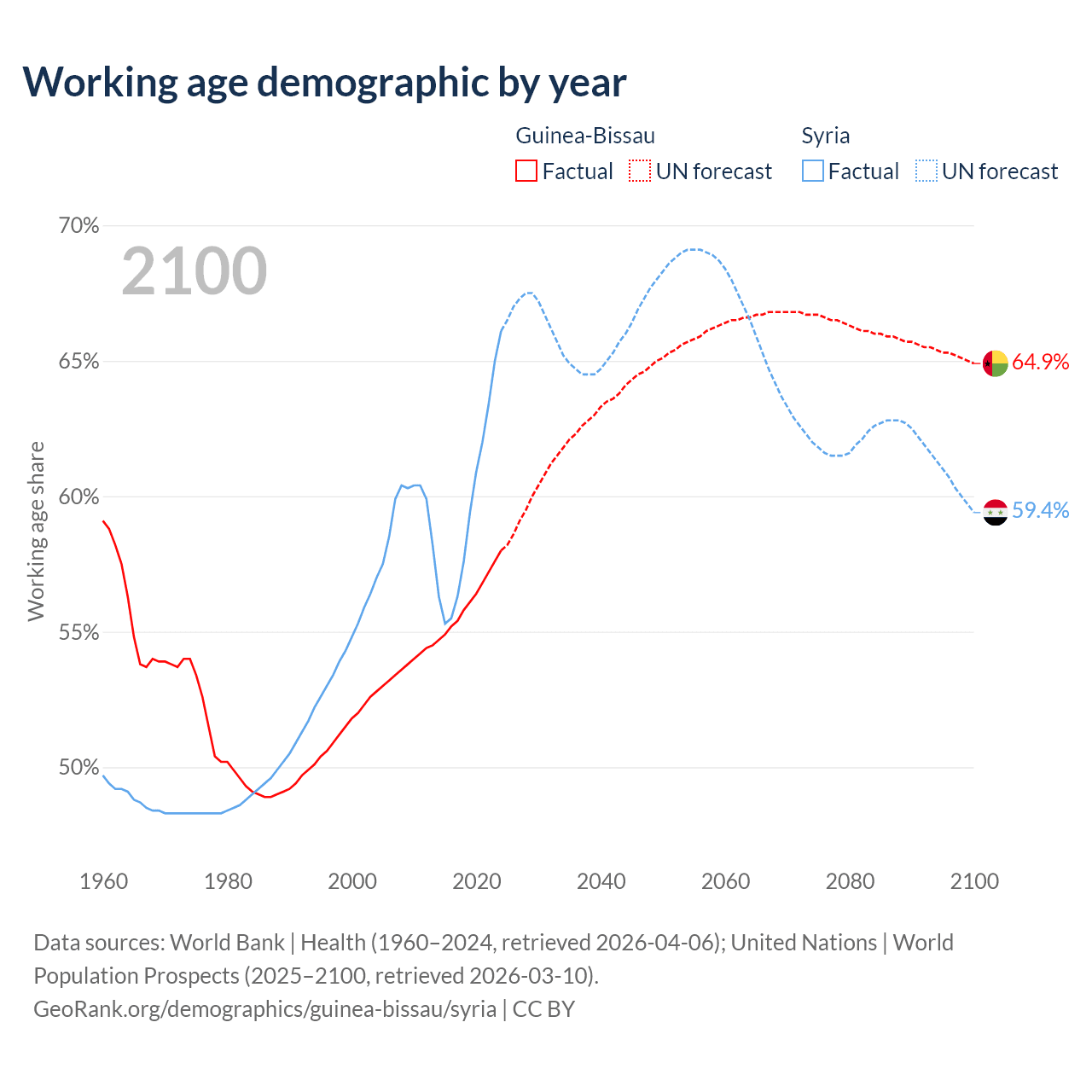 - Guinea-Bissau has 1.34M working age adults (aged 15-64) vs 17.7M in Syria.