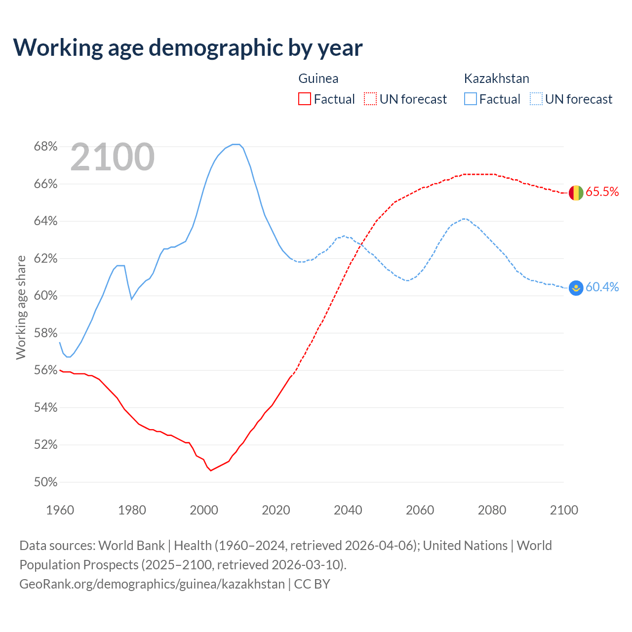 - Guinea has 8.65M working age adults (aged 15-64) vs 13.1M in Kazakhstan.