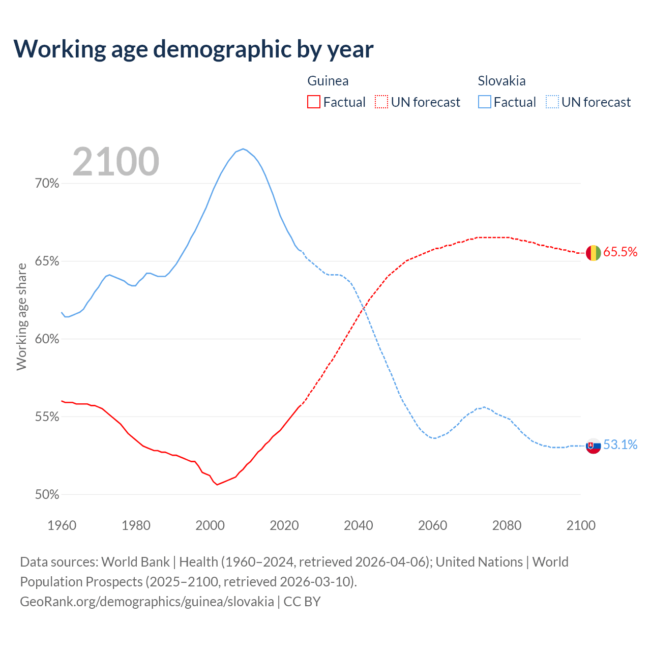 - Guinea has 8.65M working age adults (aged 15-64) vs 3.52M in Slovakia.