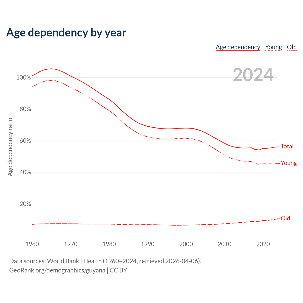 Data sources: World Bank | Health (1960–2024, retrieved 2026-04-06); U.S. Census Bureau (1960–2024, retrieved 2026-02-08).