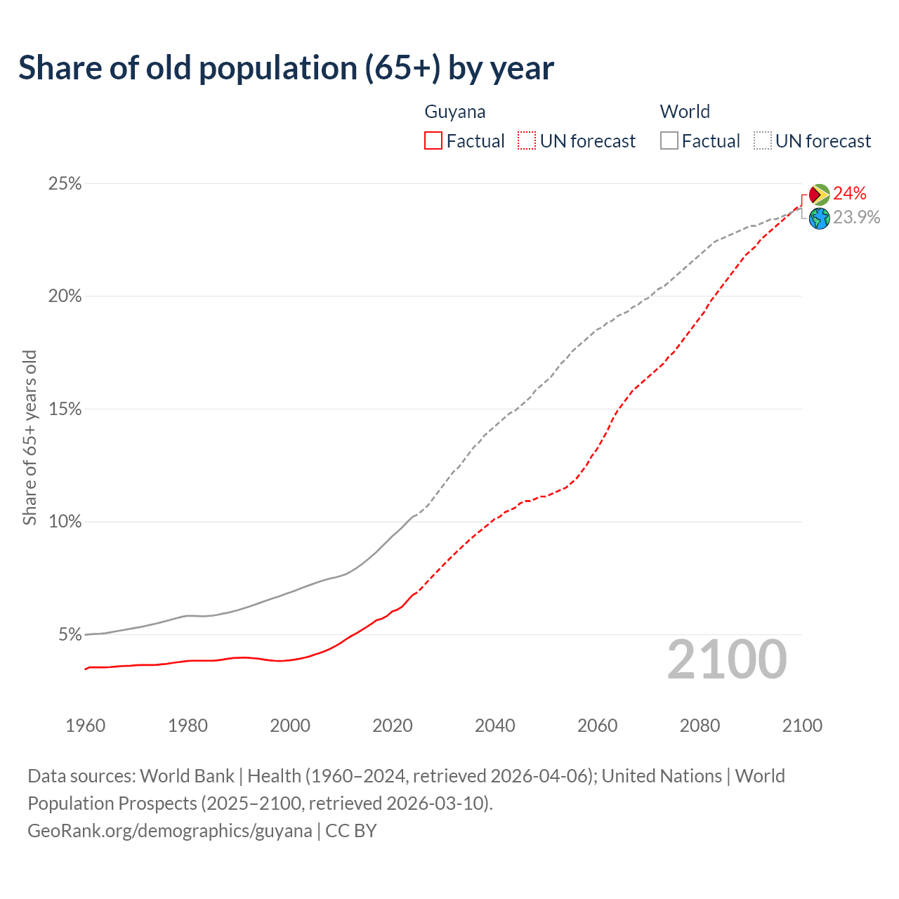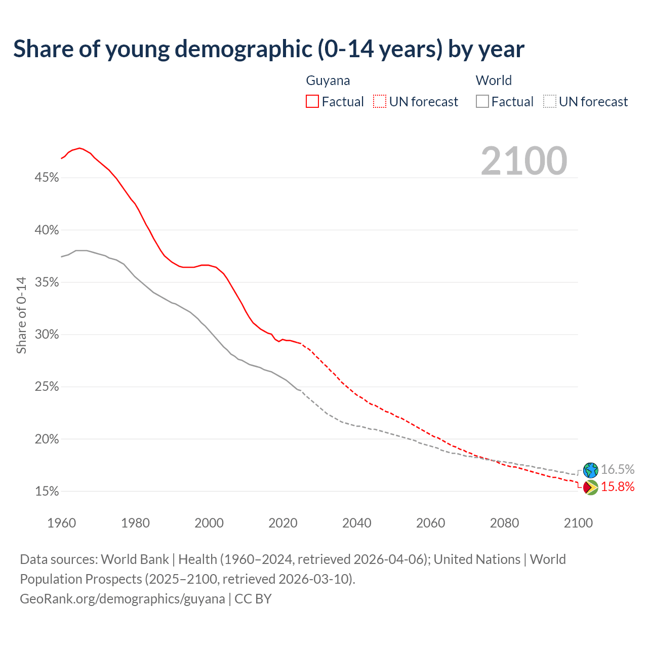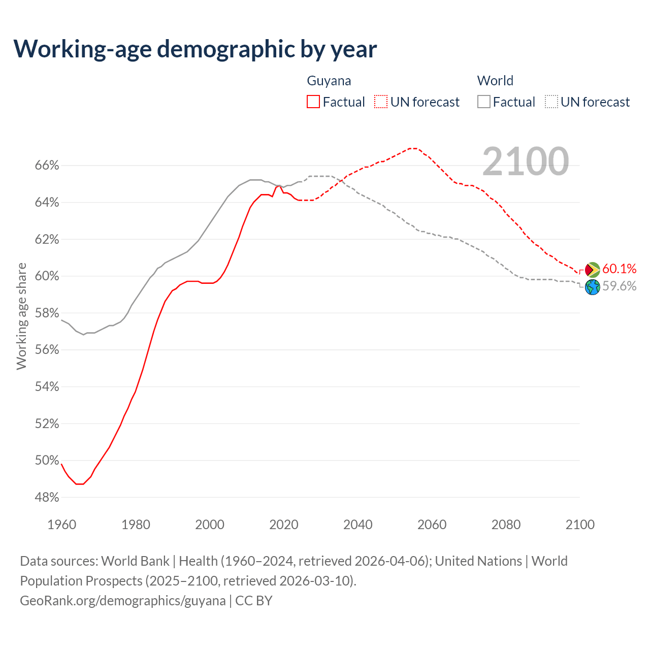 Median age in Guyana, 1960–2100