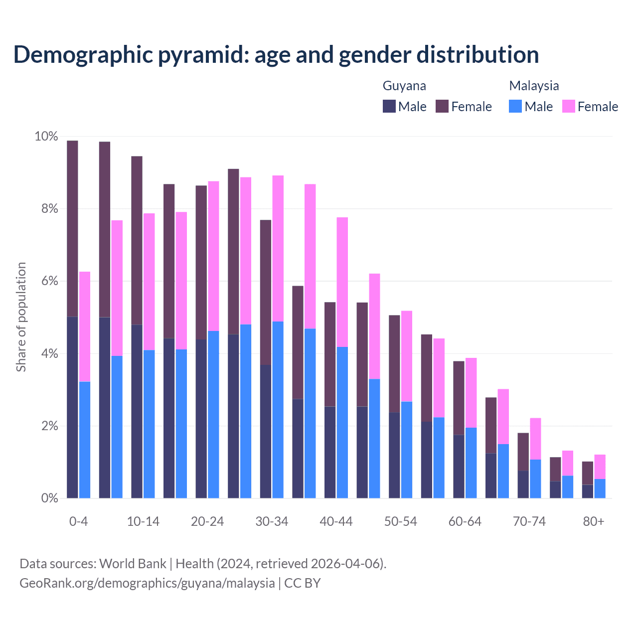 Demographics of Guyana compared to Malaysia: