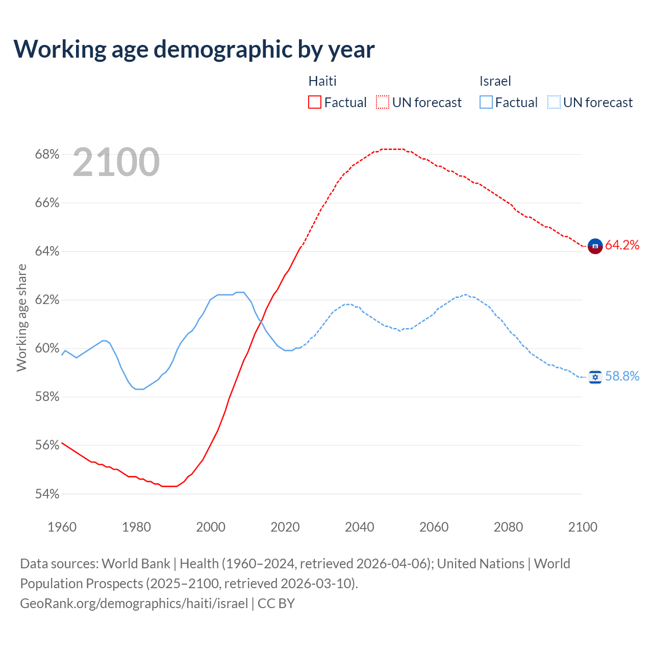 - Haiti has 7.74M working age adults (aged 15-64) vs 6.18M in Israel.