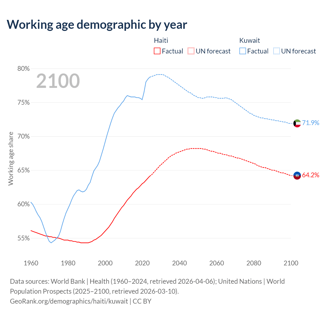 - Haiti has 7.74M working age adults (aged 15-64) vs 4.01M in Kuwait.