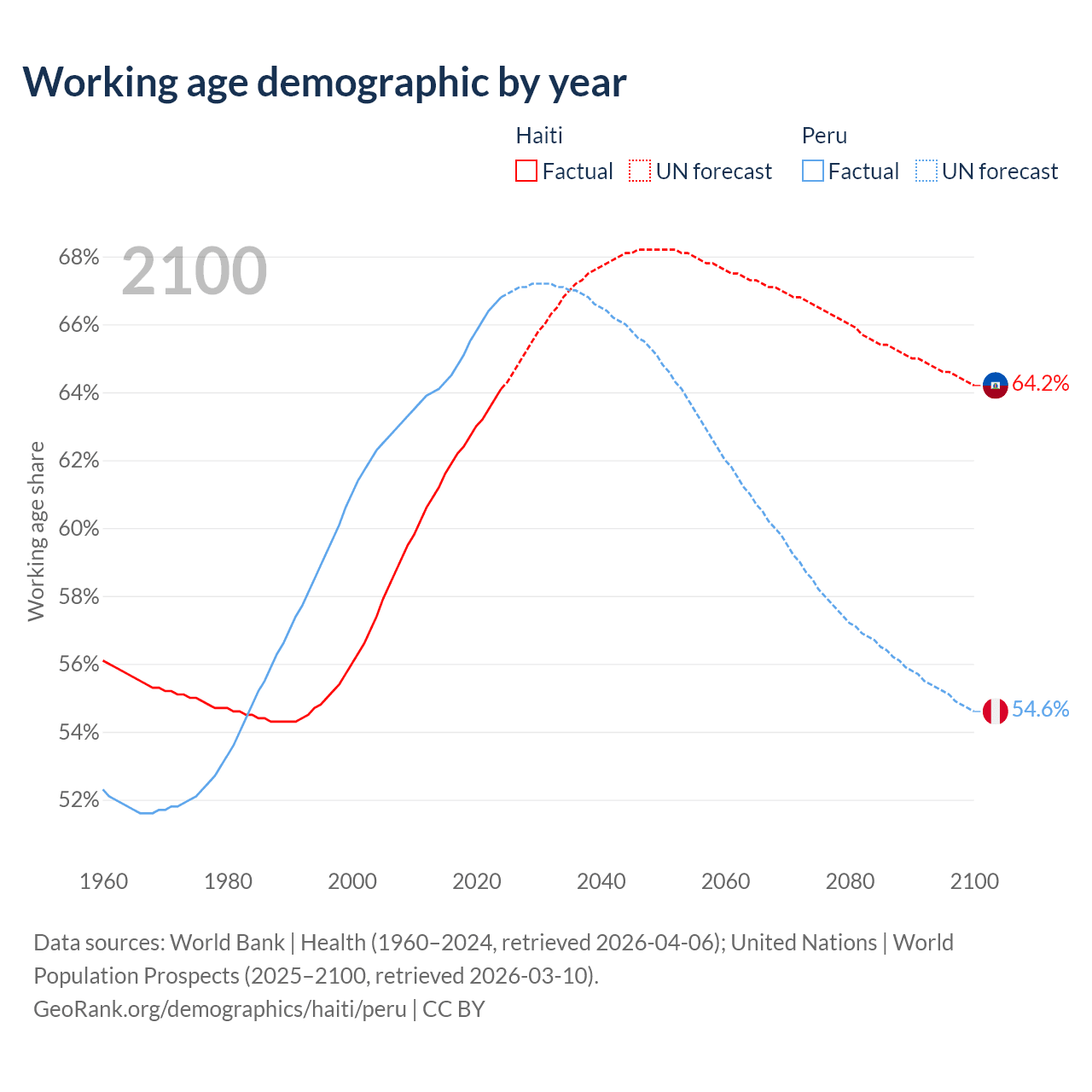 - Haiti has 7.74M working age adults (aged 15-64) vs 23.4M in Peru.