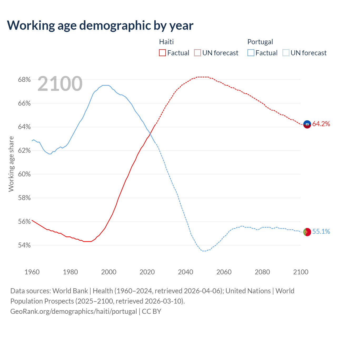 - Haiti has 7.74M working age adults (aged 15-64) vs 6.68M in Portugal.