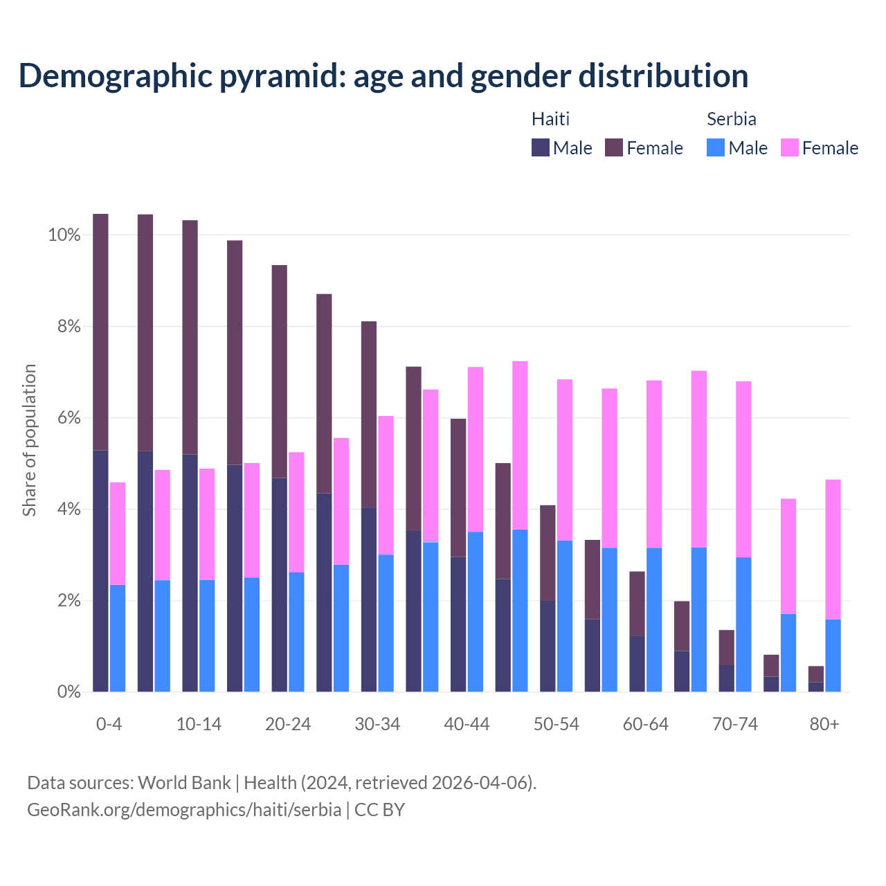 Demographics of Haiti compared to Serbia: