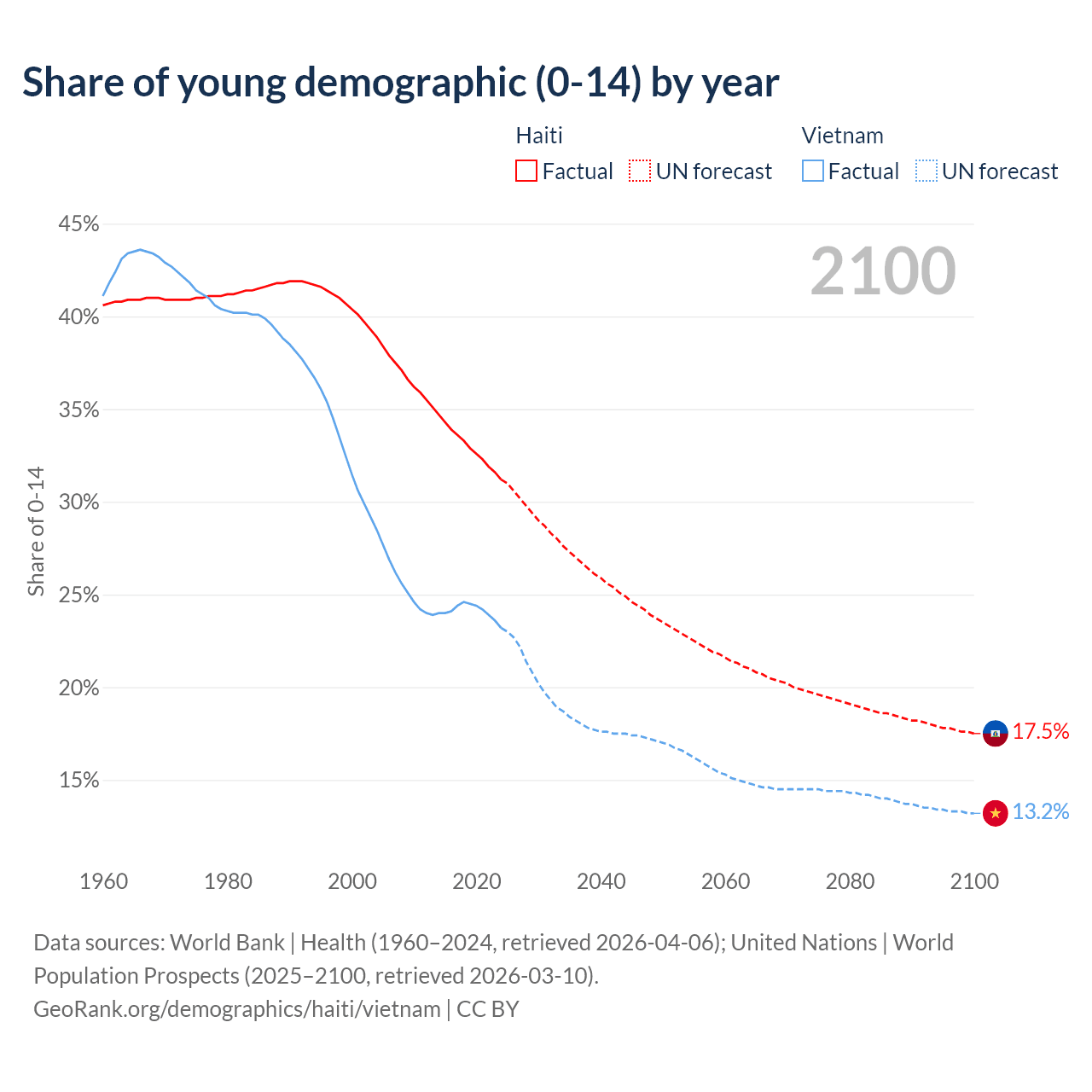 - The share of young demographic (0-15 years old) in Haiti is 31.2% vs 23.2% in Vietnam.