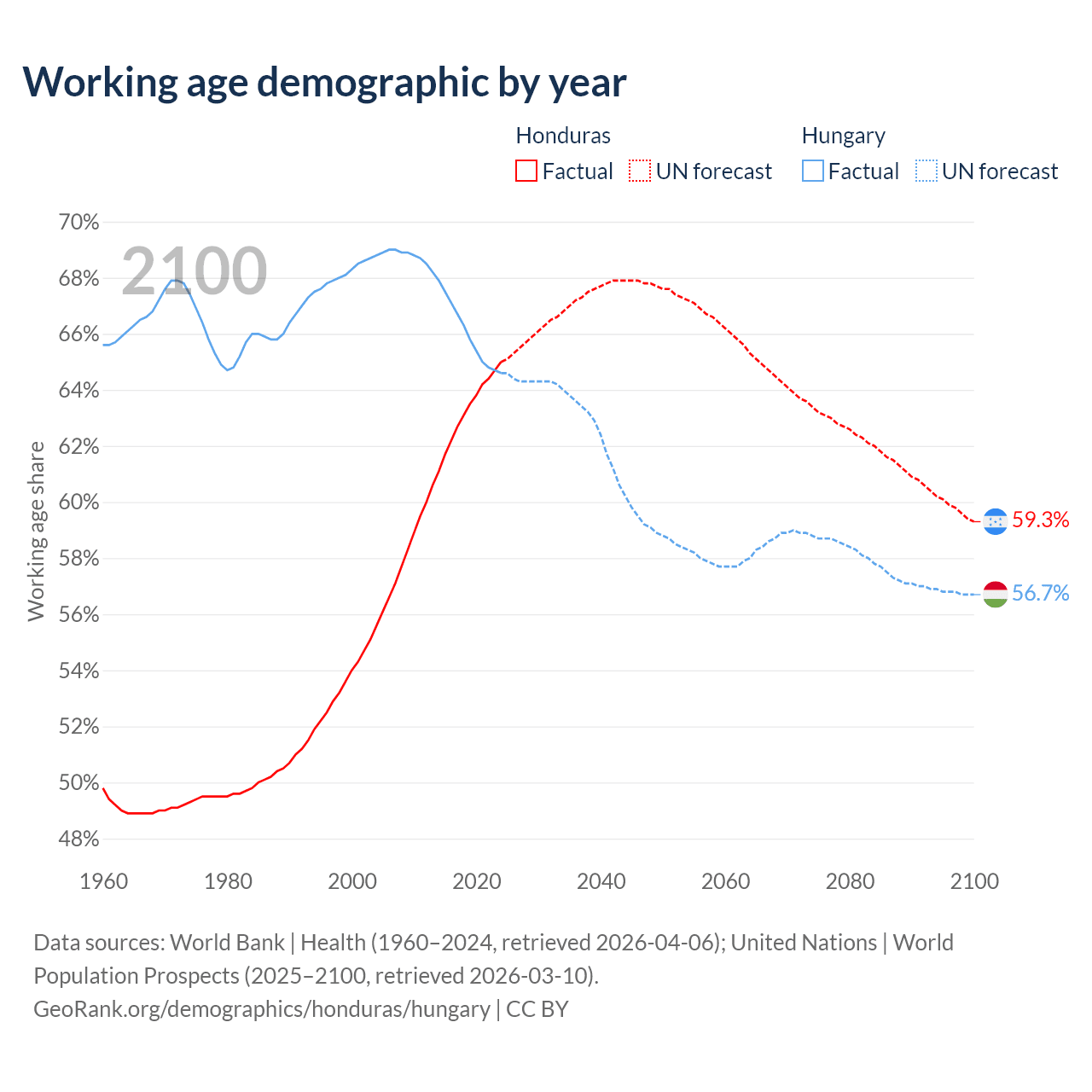 - Honduras has 7.3M working age adults (aged 15-64) vs 6.12M in Hungary.