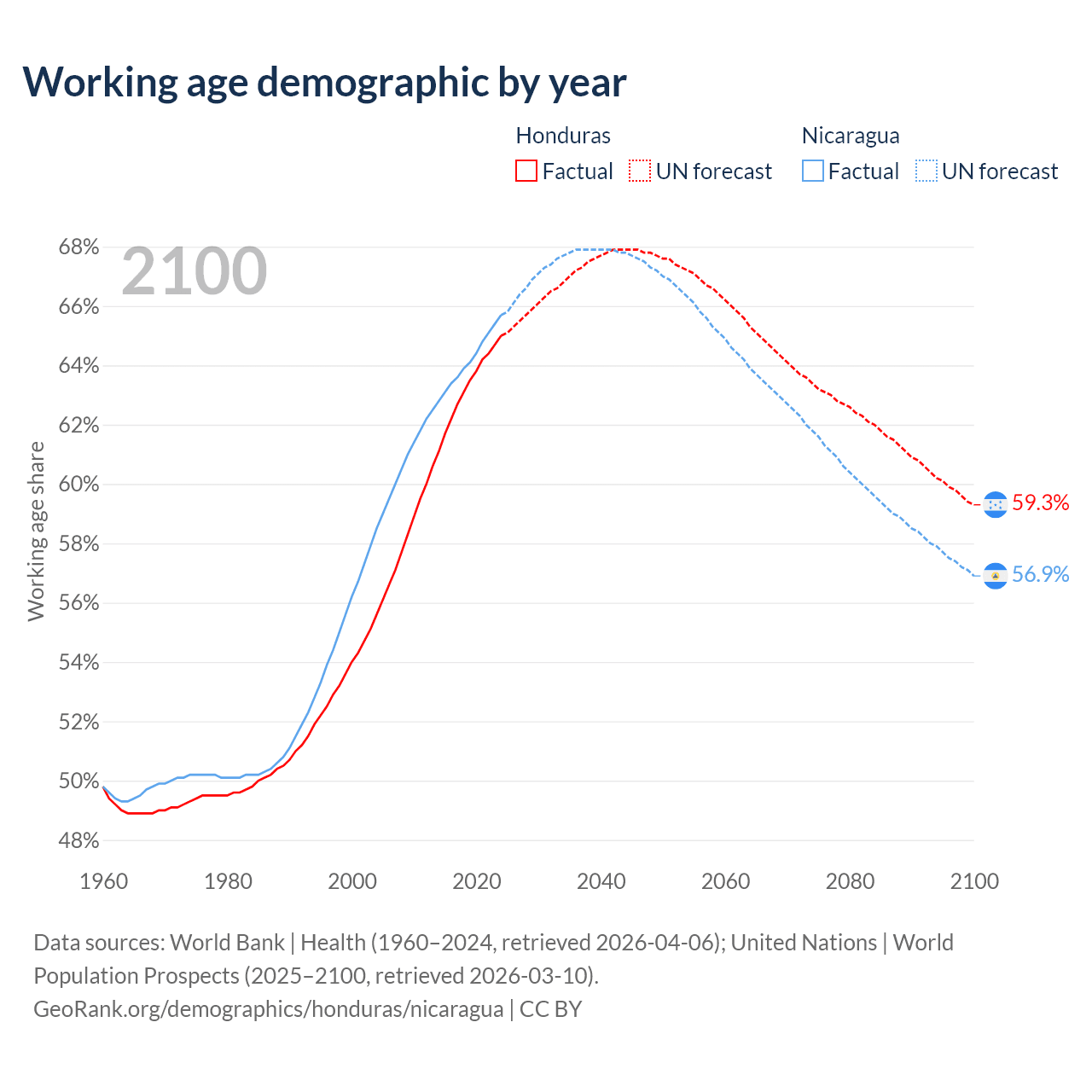 - Honduras has 7.3M working age adults (aged 15-64) vs 4.68M in Nicaragua.
