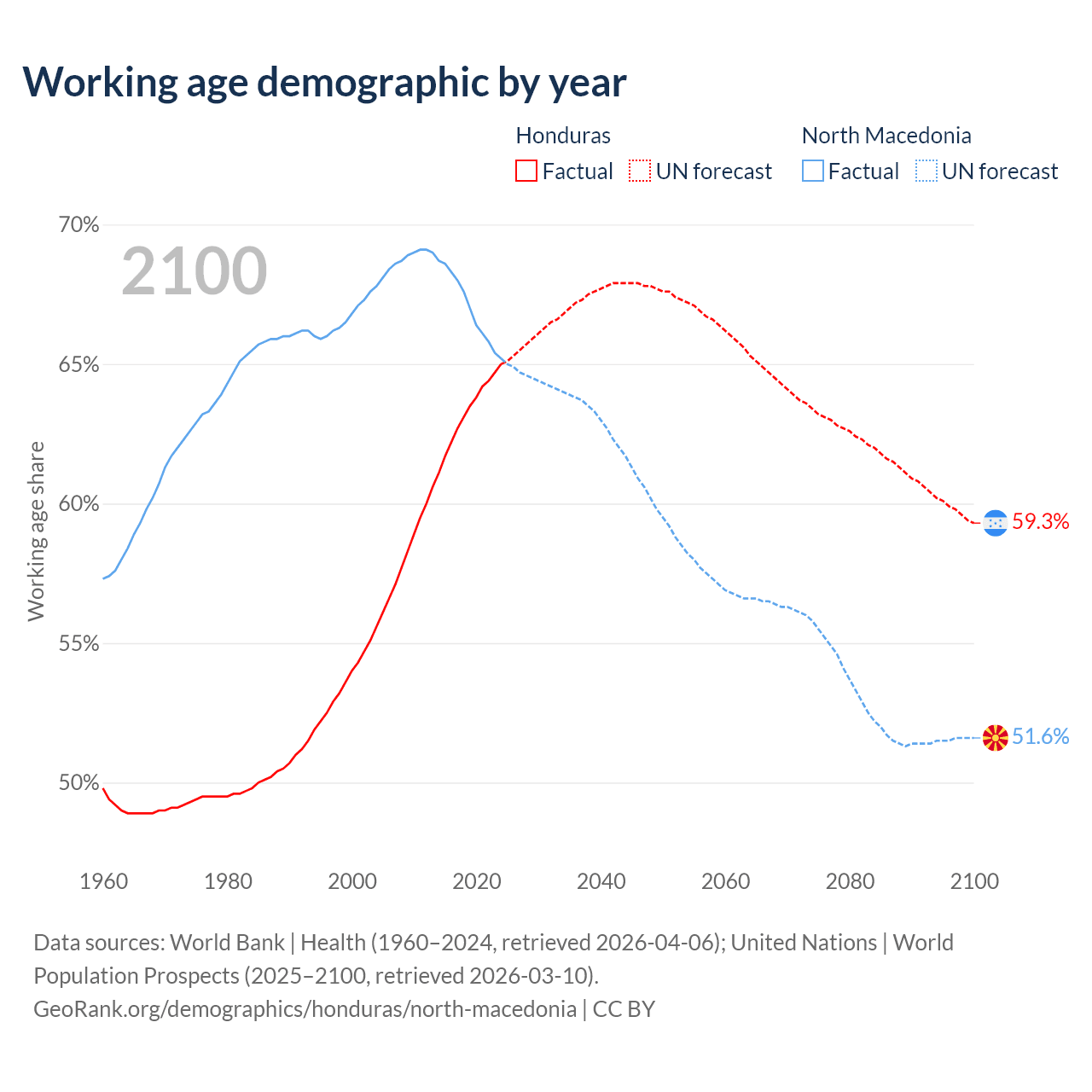 - Honduras has 7.3M working age adults (aged 15-64) vs 1.18M in North Macedonia.